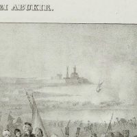 - Description: Print bears the title “BATTLE AT ABUKIR”. Under the illustration: Details of the event.