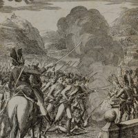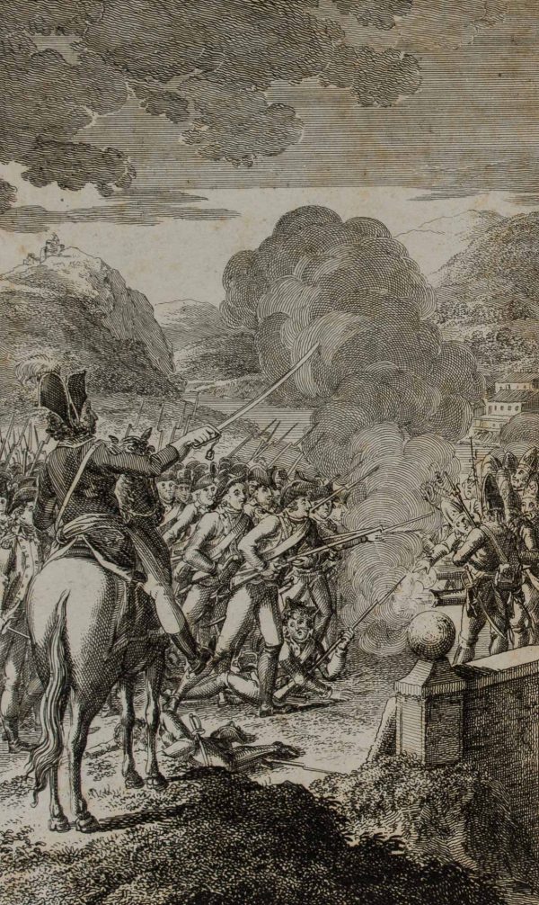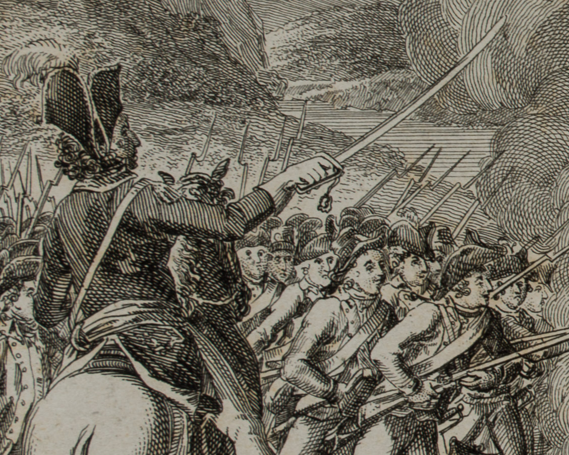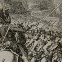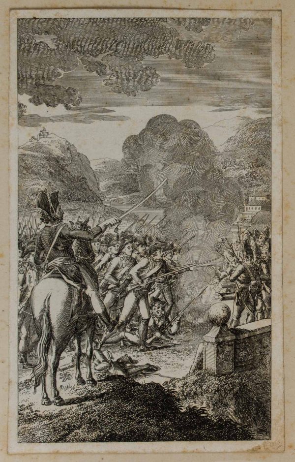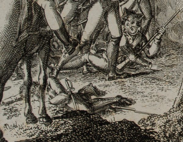 - Bezeichnung: Unterhalb der Darstellung bezeichnet mit “Die alten und neuen Deutschen. / Der deutsche Minister zu Turin 1706”; oben rechts nummeriert “7.”. Darstellung im Rahmen der Schlacht von Turin im Jahr 1706, der größten Schlacht des Spanischen Erbfolgekrieges auf italienischem Boden.