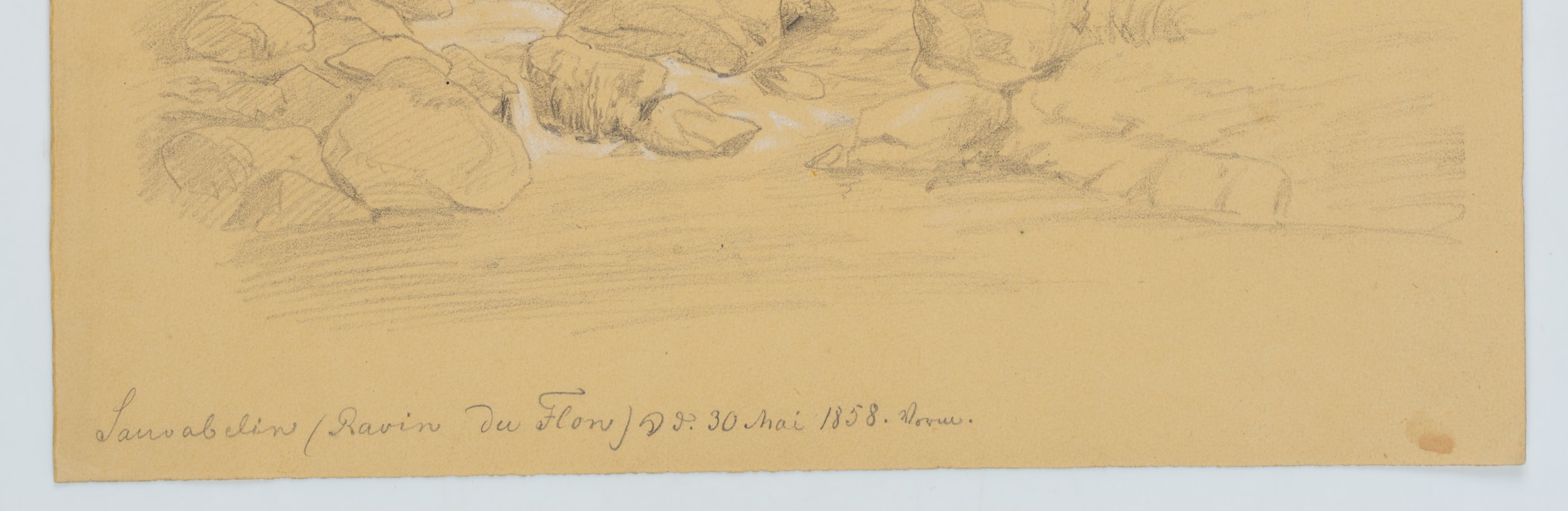 - Inscription: lower left inscribed: “Lannabelin / Ravin de Flore … [?]”. Lower middle dated: “30. Mai 1858”.