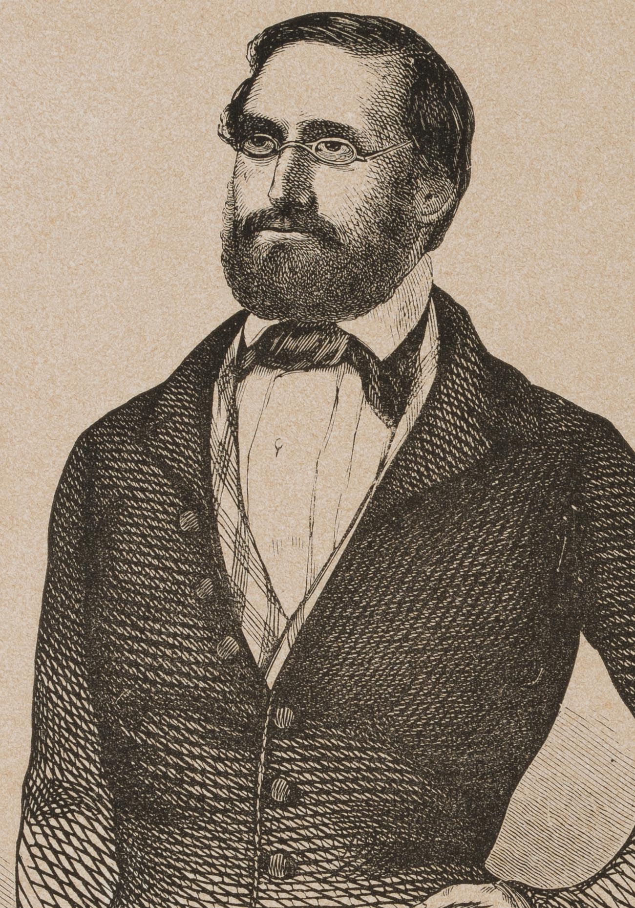 Unbekannt (19. Jahrhundert), Porträt des Schriftstellers und Theologen Johann Gottfried Kinkel (1815 Oberkassel, Bonn – 1882 Zürich), Hüftbild im Dreiviertelprofil, 19. Jahrhundert, Holzstich