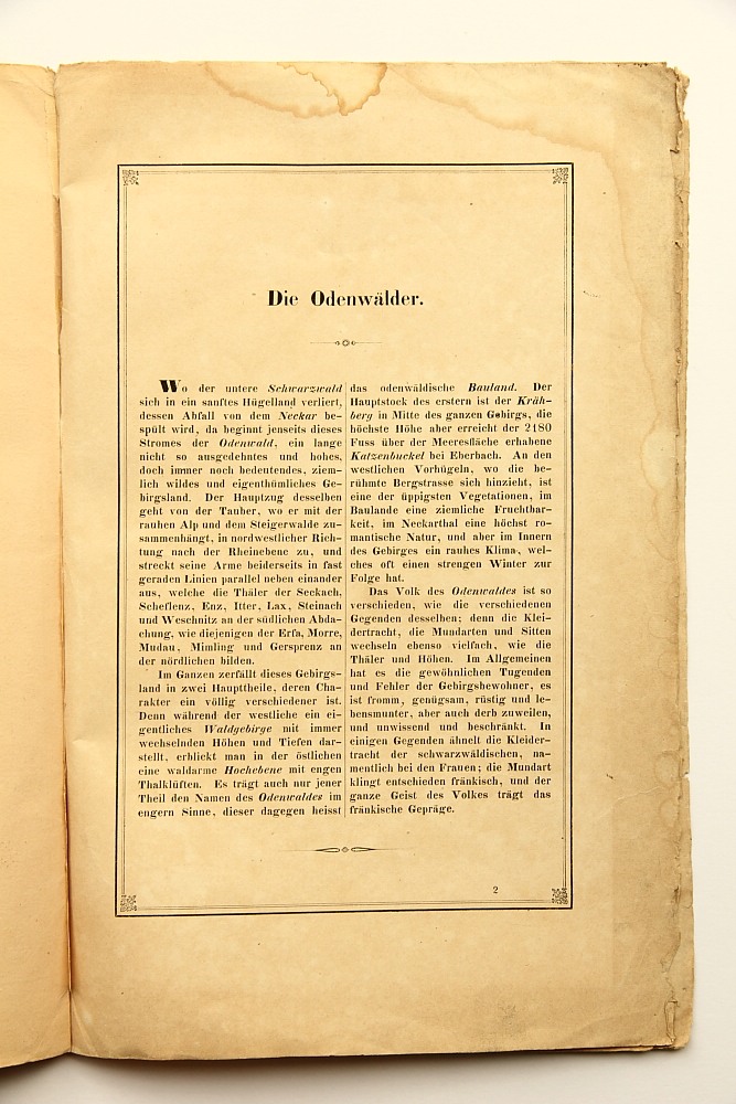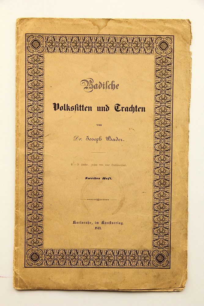 • Beschreibung: Druckgrafik in Heft “Badische Volkssitten und Trachten” von Dr. Joseph Bader, Zweites Heft, Karlsruhe 1843. Der Stich befindet sich mit Begleittexten “Die Odenwälder” und “Die Wallfahrer” in Heftbindung.