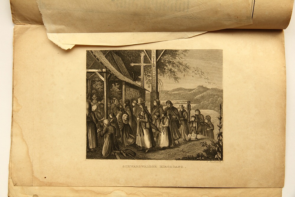 • Description: Print in booklet “Badische Volkssitten und Trachten” by Dr. Joseph Bader, Zweites Heft, Karlsruhe 1843. The engraving is bound in booklet with accompanying texts “Die Odenwälder” and “Die Wallfahrer”.