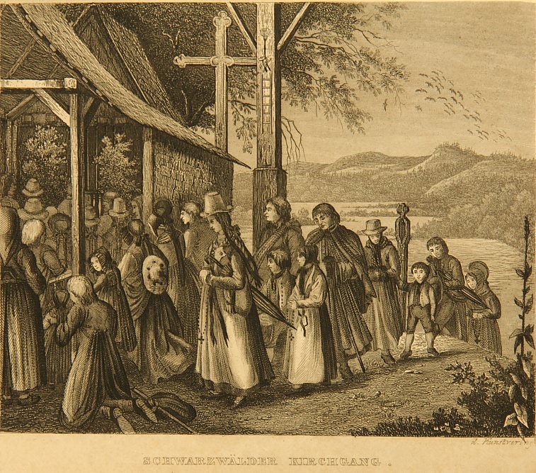 Unbekannt (19. Jahrhundert), Schwarzwälder Kirchgang, Baden, 1843, Stahlstich
