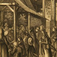 Druckgrafik in Heft “Badische Volkssitten und Trachten” von Dr. Joseph Bader, Zweites Heft, Karlsruhe 1843. Der Stich befindet sich mit Begleittexten “Die Odenwälder” und “Die Wallfahrer” in Heftbindung.