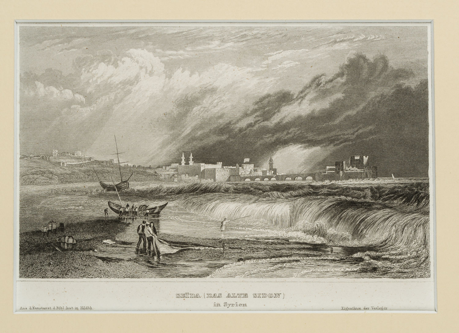 • Beschreibung: Unter der Gaphik betitelt mit “SEIDA (DAS ALTE SIDON) in Syrien”.