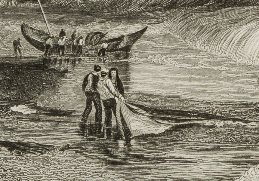 Unbekannt (19. Jahrhundert), Seelandschaft bei Seida mit Fischern und Booten, 19. Jahrhundert, Aquatinta