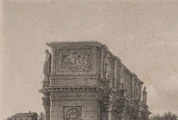 Unbekannt (19. Jahrhundert), Seitlicher Blick auf den Konstantinbogen in Rom, 19. Jahrhundert, Lithographie