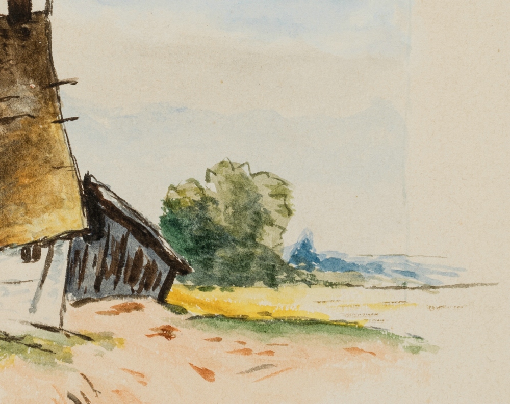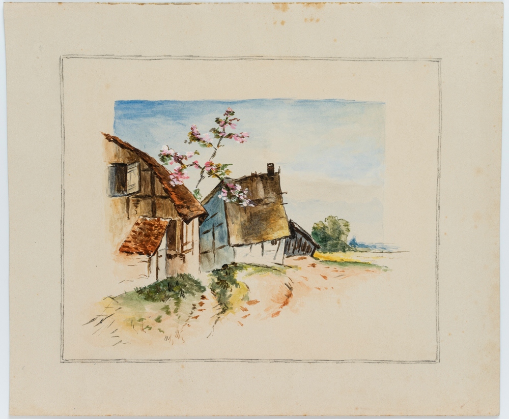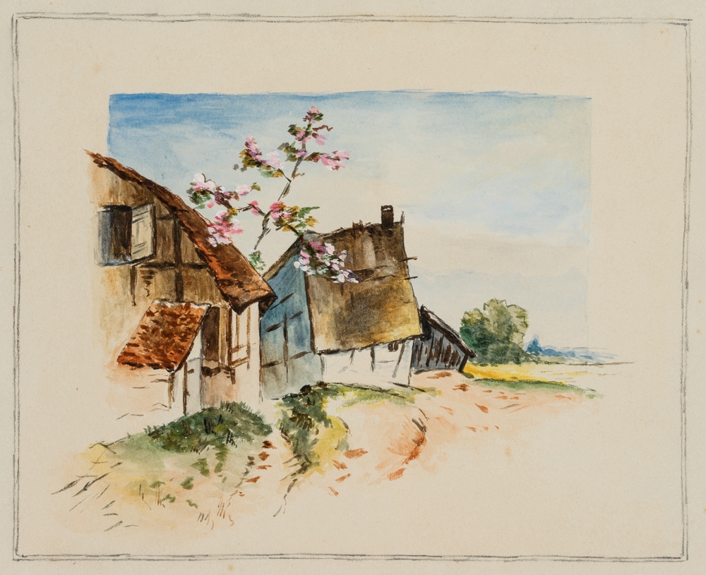 Unknown (19th century), Settlement with cherry blossom branch, c. 1900, Watercolor