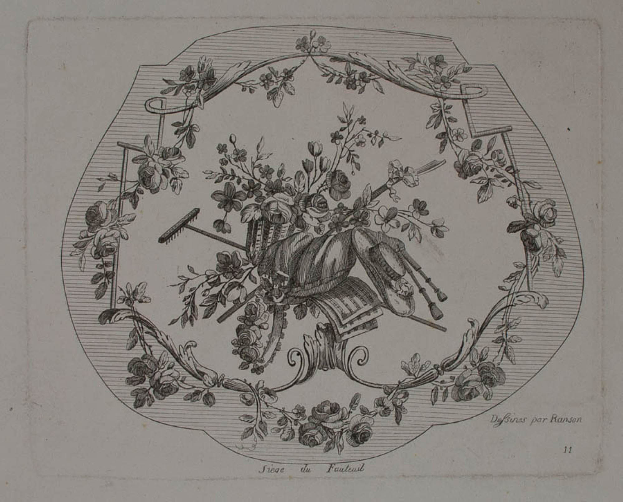 Unknown (19th century), Armchair seat. Designed by Ranson, 19th century, Copper engraving