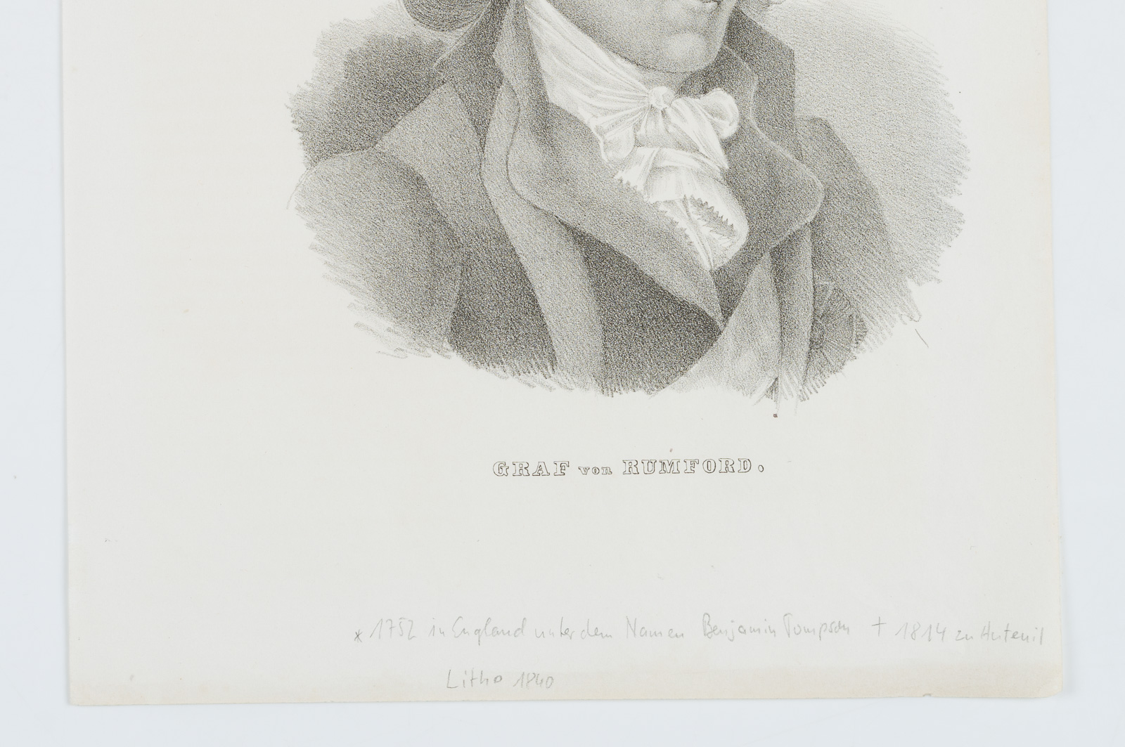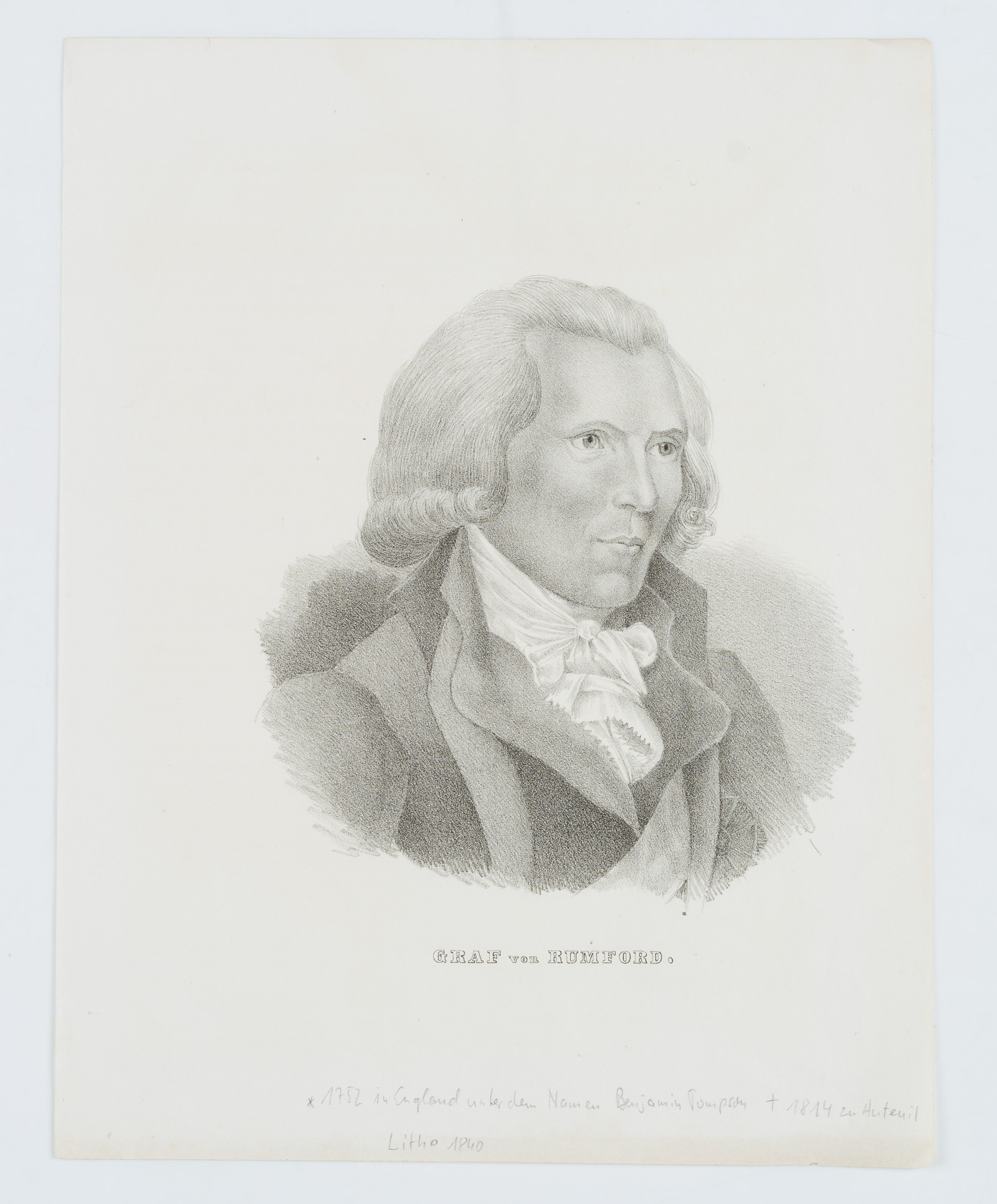 Unbekannt (19. Jahrhundert), Sir Benjamin Thompson, Graf Rumford, Physiker u. brit. Offizier, 1840, 1840, Lithographie