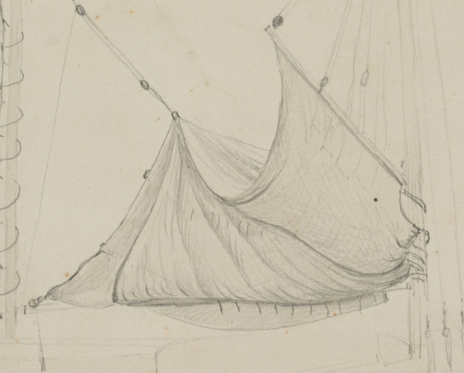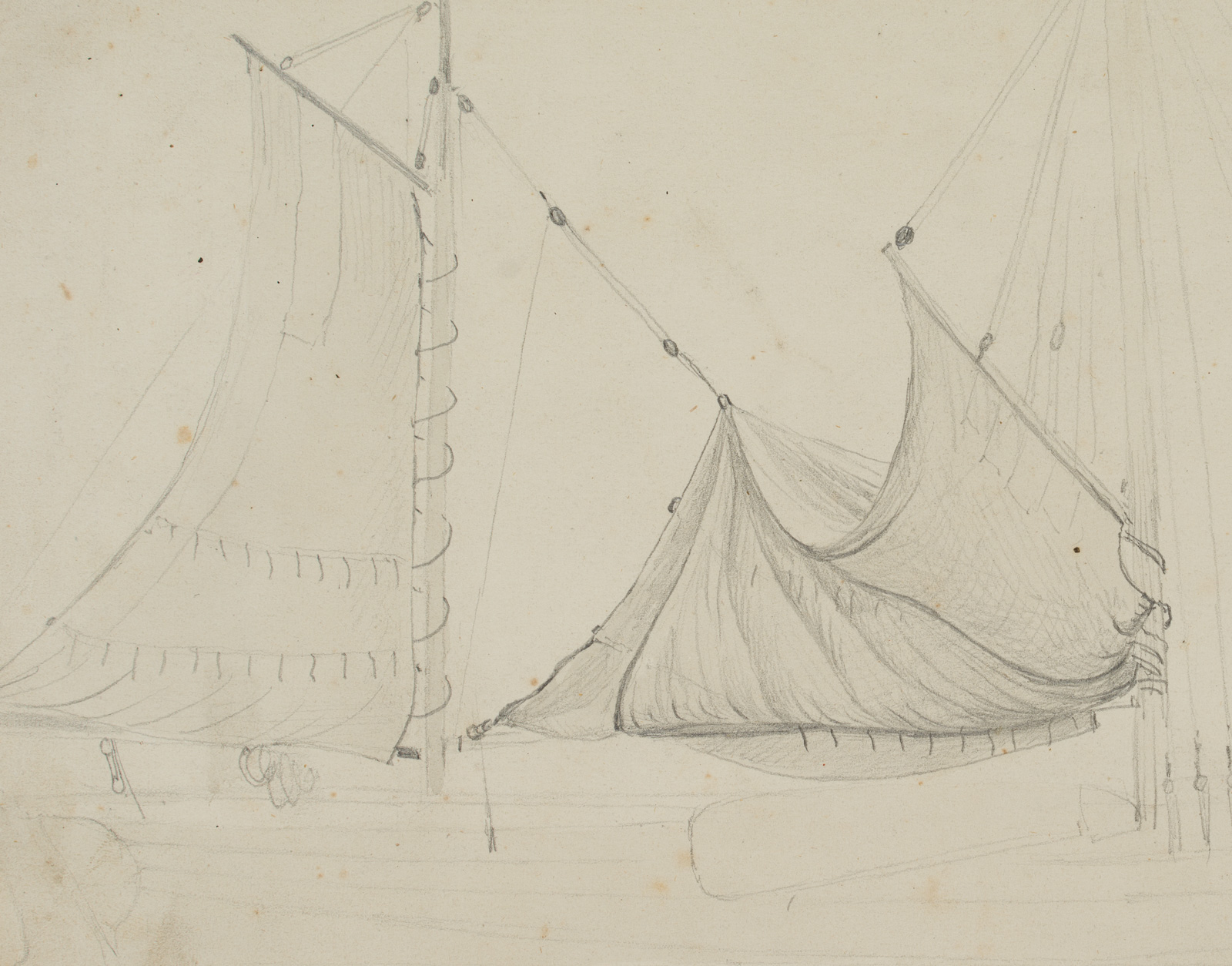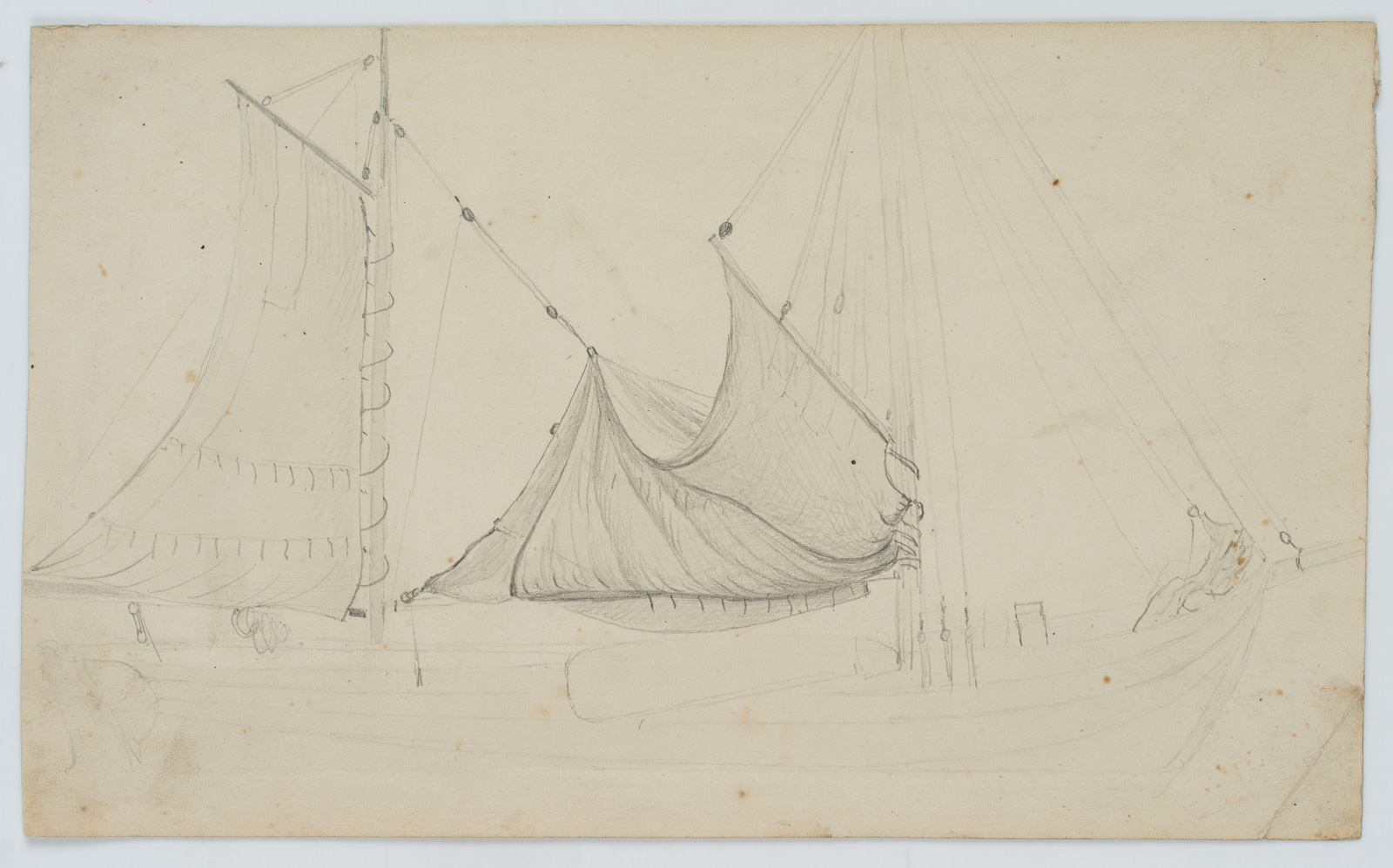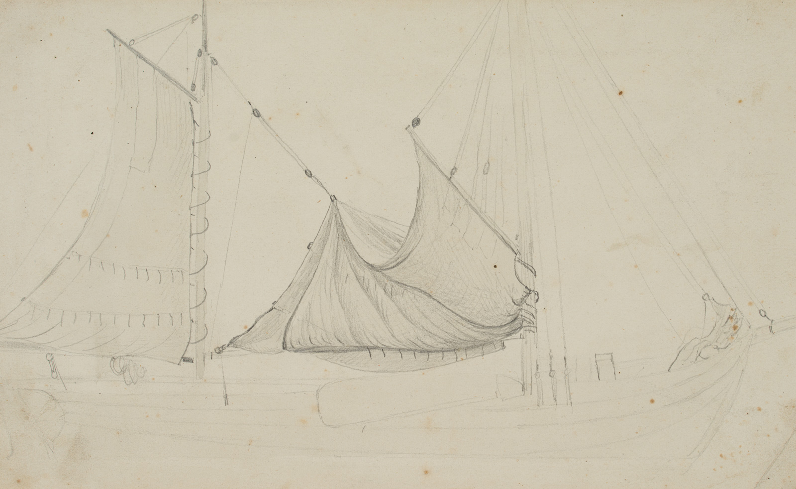 Unknown (19th century), Sketch of a ship setting sail, 19th century, Pencil