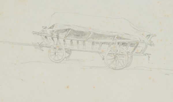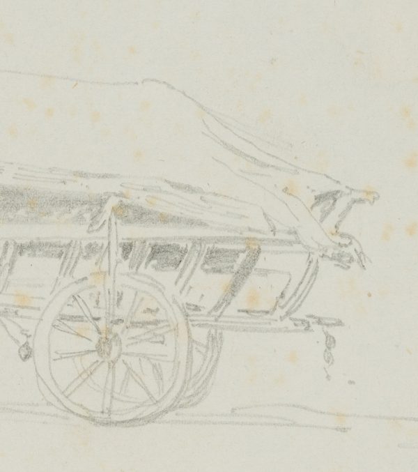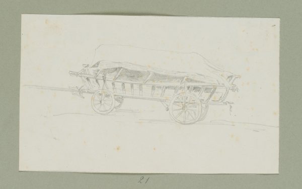 - Description: Loaded carriage. Inscribed on the backing: “Skizzen vom Gardasee, aus einem Sammelalbum eines unbekannten dt. Zeichners um 1850” and numbered: “21”.