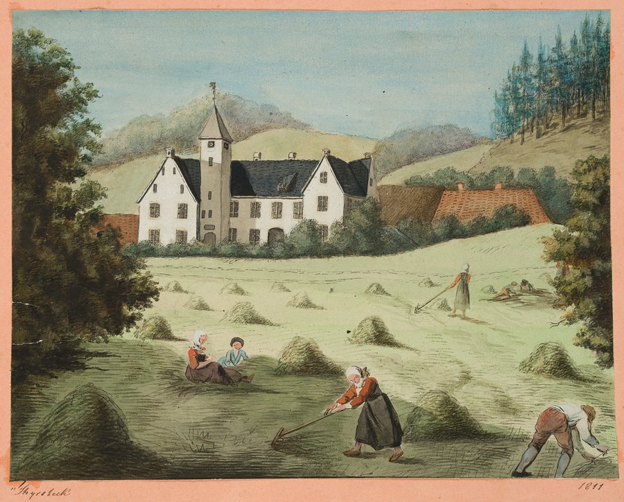 Unbekannt (19. Jahrhundert), Slot Tirsbæk in Vejle, Dänemark, 1811, Aquarell
