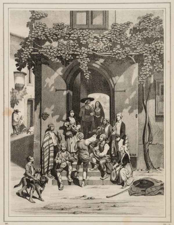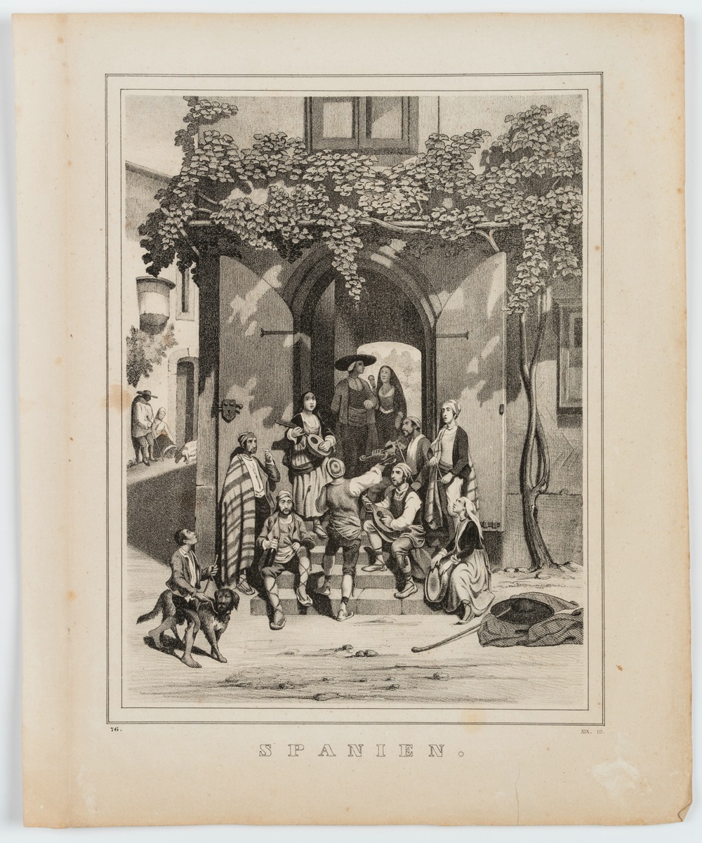 Unbekannt (19. Jahrhundert), Spanische Musikanten, 19. Jahrhundert, Lithographie