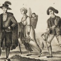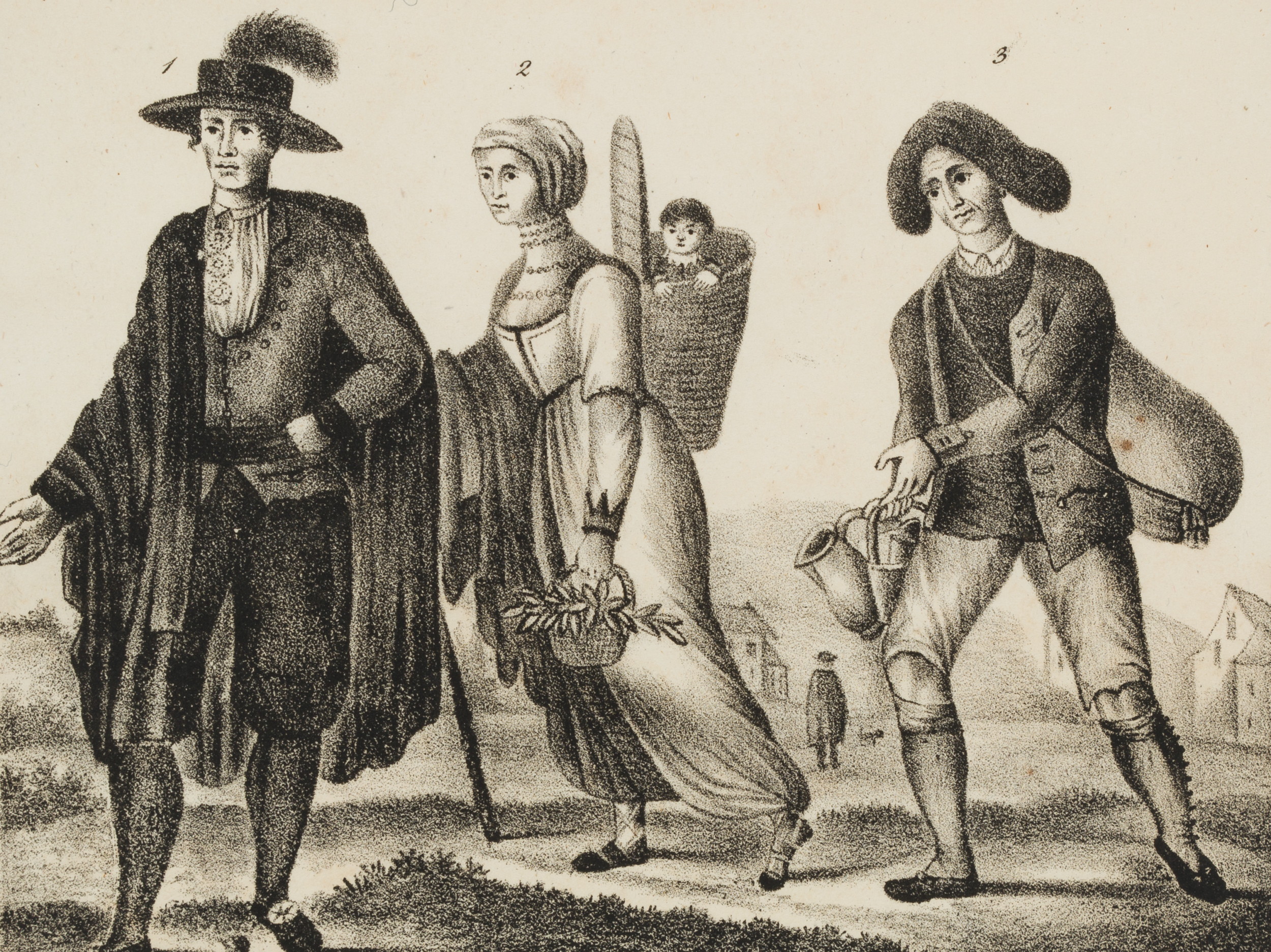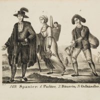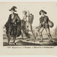 Unbekannt (19. Jahrhundert), Darstellung spanischer Trachten. Pachter, Bäuerin, Ölhändler, um 1829, Lithographie