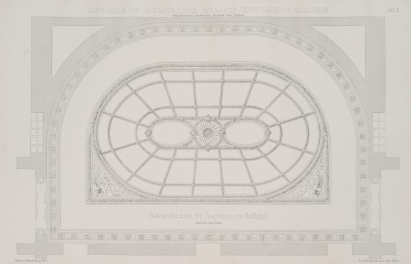 Unbekannt (19. Jahrhundert), “Gebäude der Staats-, Kriegs- & Marine-Departements, Washington”, Treppe, 1885, 1885, Lithographie