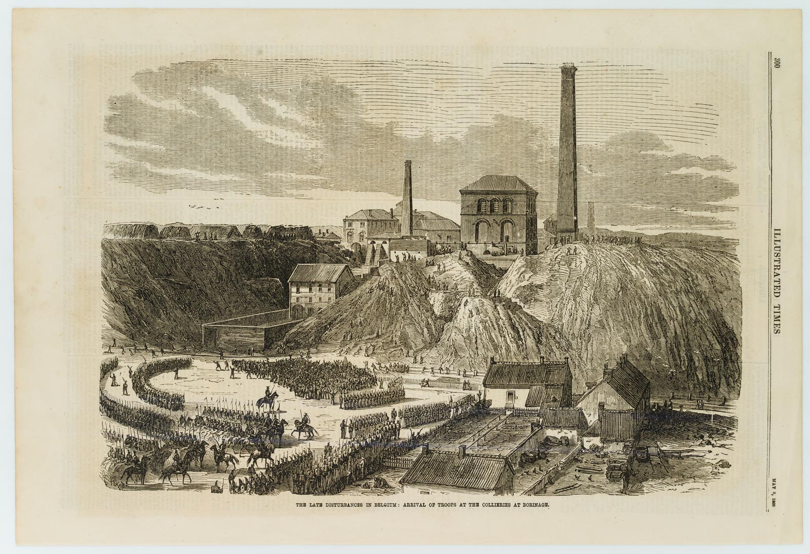 - Inscription: Inscribed below with: „THE LATE DISTURBANCES IN BELGIUM: ARRIVAL OF TROOPS AT THE COLLIERIES AT BORINAGE.“