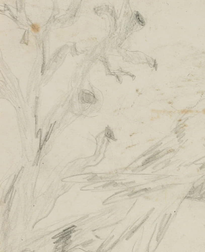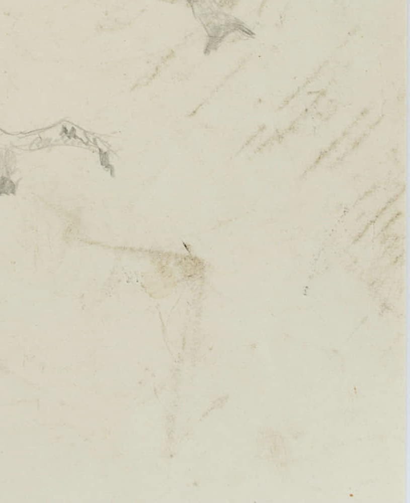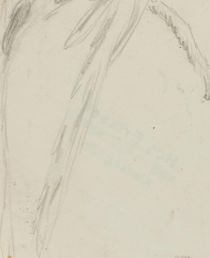 - Beschreibung: Mit schnellen Strichen skizzierte Tierstudie eines großen Ara-Papageis auf einem Ast sitzend. Vermutlich wurde die Skizze in einem Tierpark angefertigt. Rückseitig befindet sich der Stempel des Kunsthändlers “Hos Eriksen Køb Salg Bytte Klerkegade I”. Das Blatt stammt aus einer Sammlung von Zeichnungen skandinavischer Künstler aus dem späten 19. Jahrhundert.