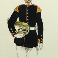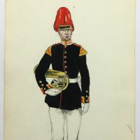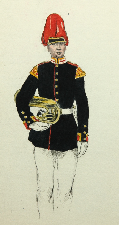 Unknown (19th century), Study sketches, horn players of a drum corps and stags, c. 1900, Pencil