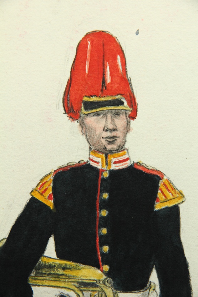 - Condition: Very good condition. Faint discolourations are visible along the edges, due to age. The upper edge of the sheet is bumped in places. Occasional minimal rubbing of the pencil. The impression of the image is impeccable. The bright colours are freshly preserved.