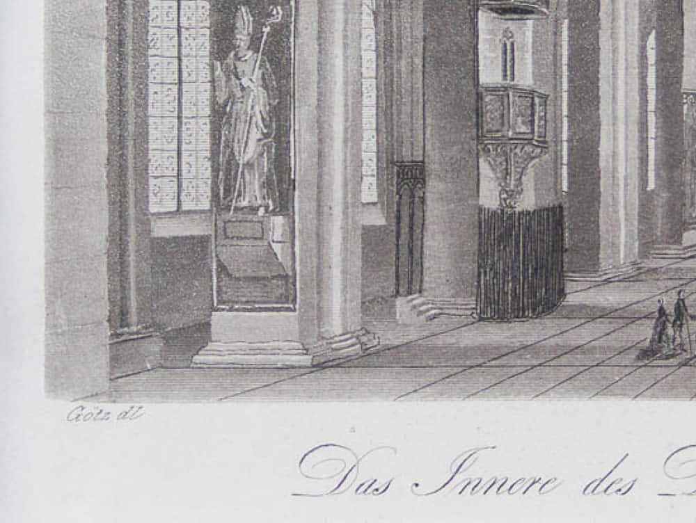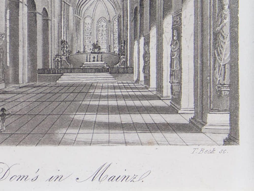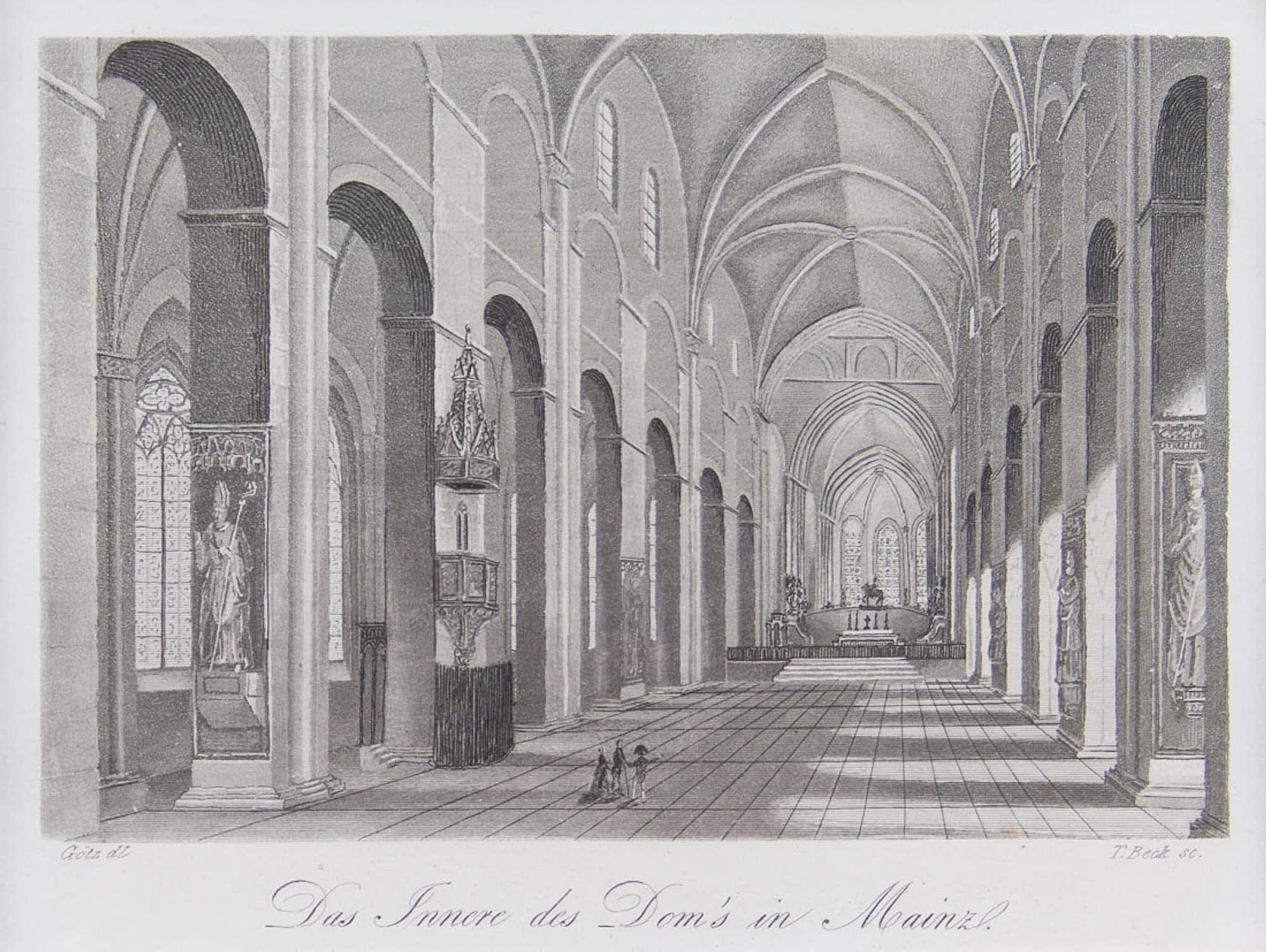 Unbekannt (19. Jahrhundert), (T. Beck nach Götz) Das Innere des Doms zu Mainz, 19. Jahrhundert, Aquatinta