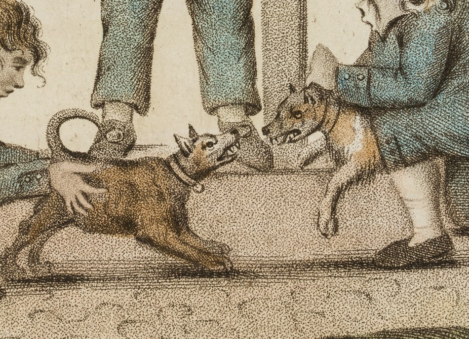 Unknown (19th century), Three naughty boys dogfighting, 19th century, Copper engraving