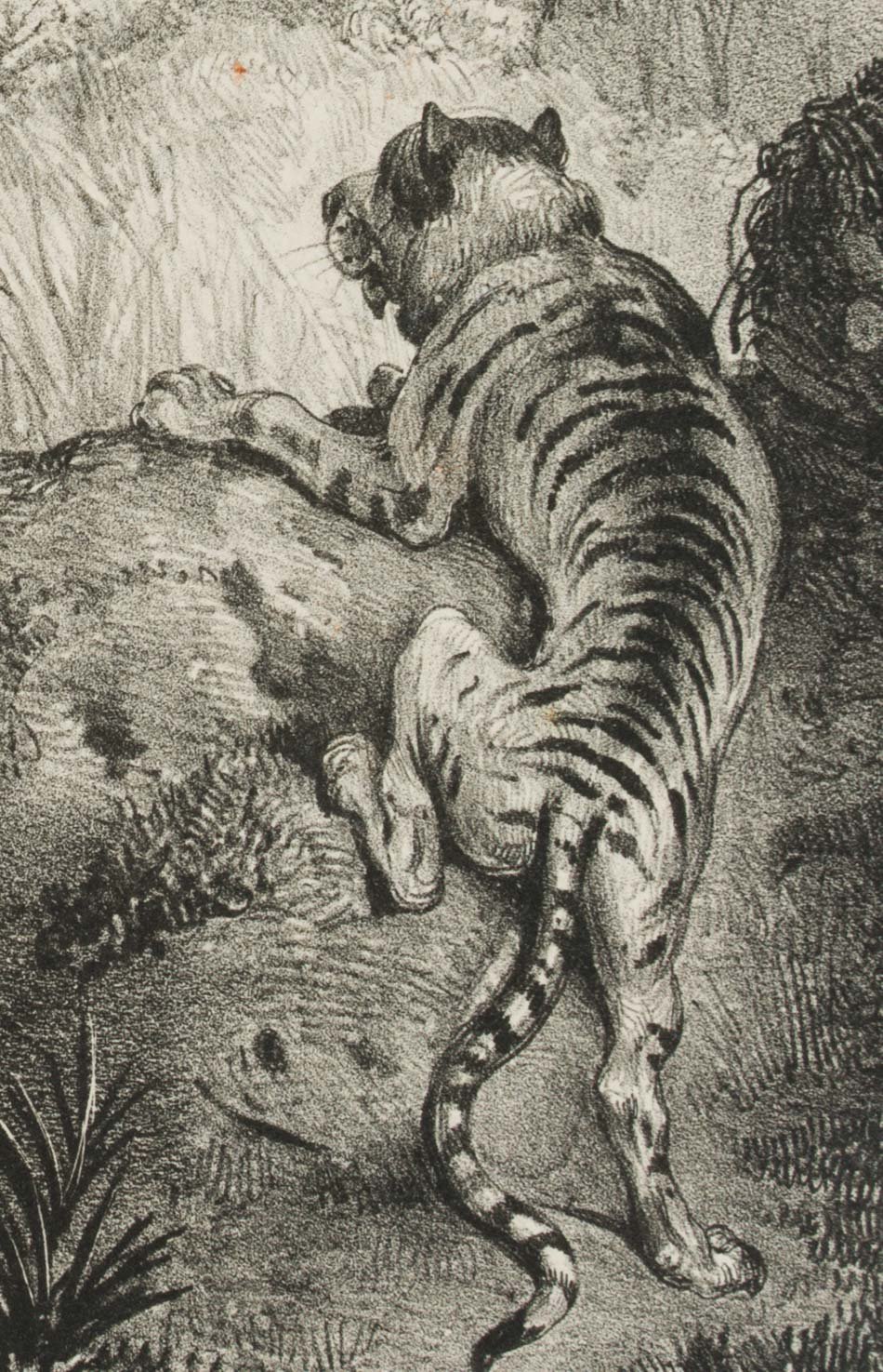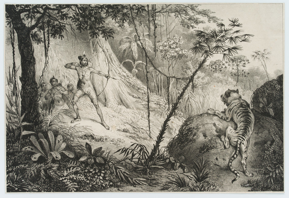 Unknown (19th century), Tiger hunting in the Indonesian jungle, Hunting indigenous people, 19th century, Lithography