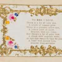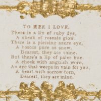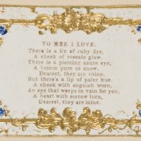 Unbekannt (19. Jahrhundert), ‘To her I love’ Poesieverse in Schmuckrahmung, um 1850, Glückwunschbillet