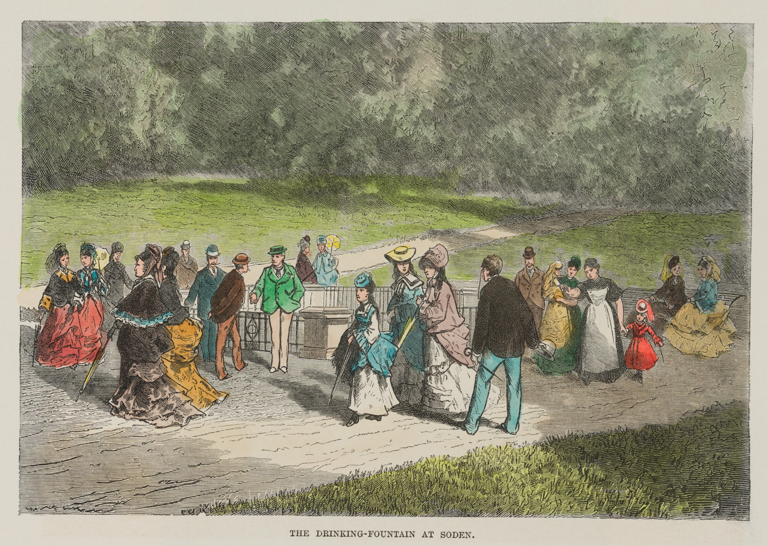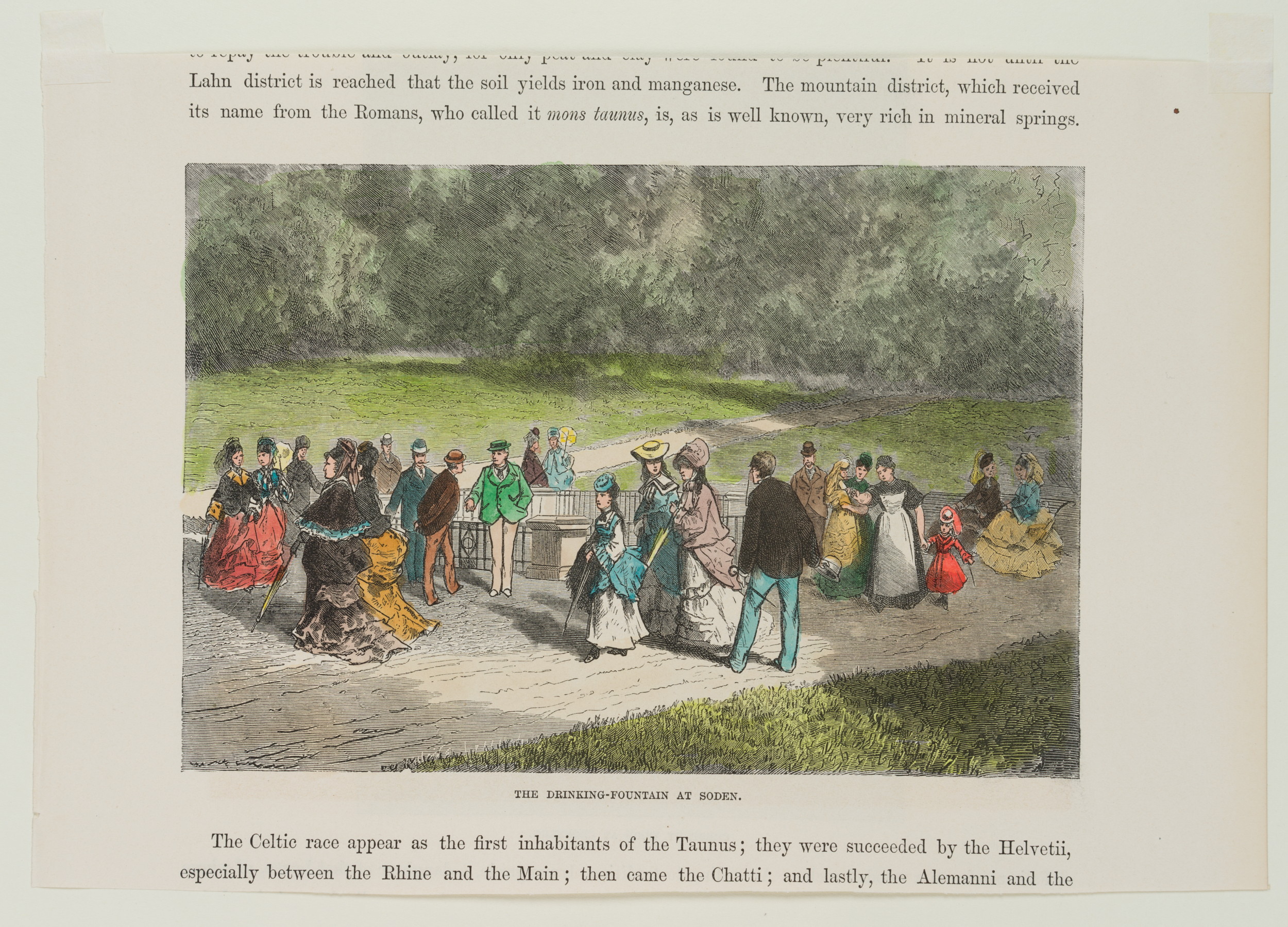 - Schlagworte: Kurpark, Kurort, Brunnen, Trinkwasser, Ausflug, bürgerlich, Sonntag, Freizeit, Genre, Deutschland, Bad Soden am Taunus, Biedermeier, 1850-1899