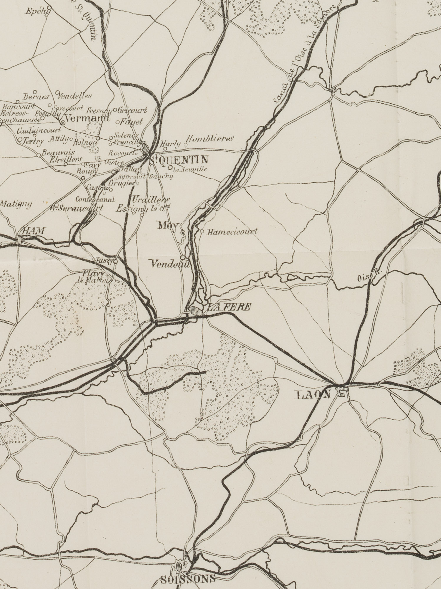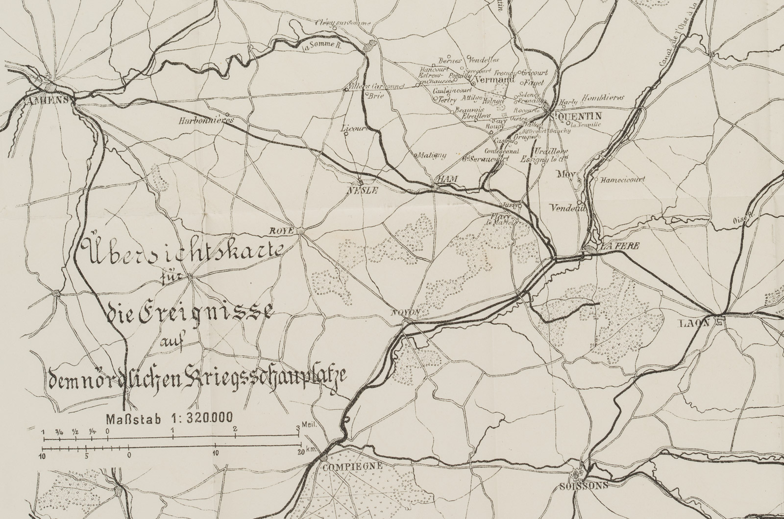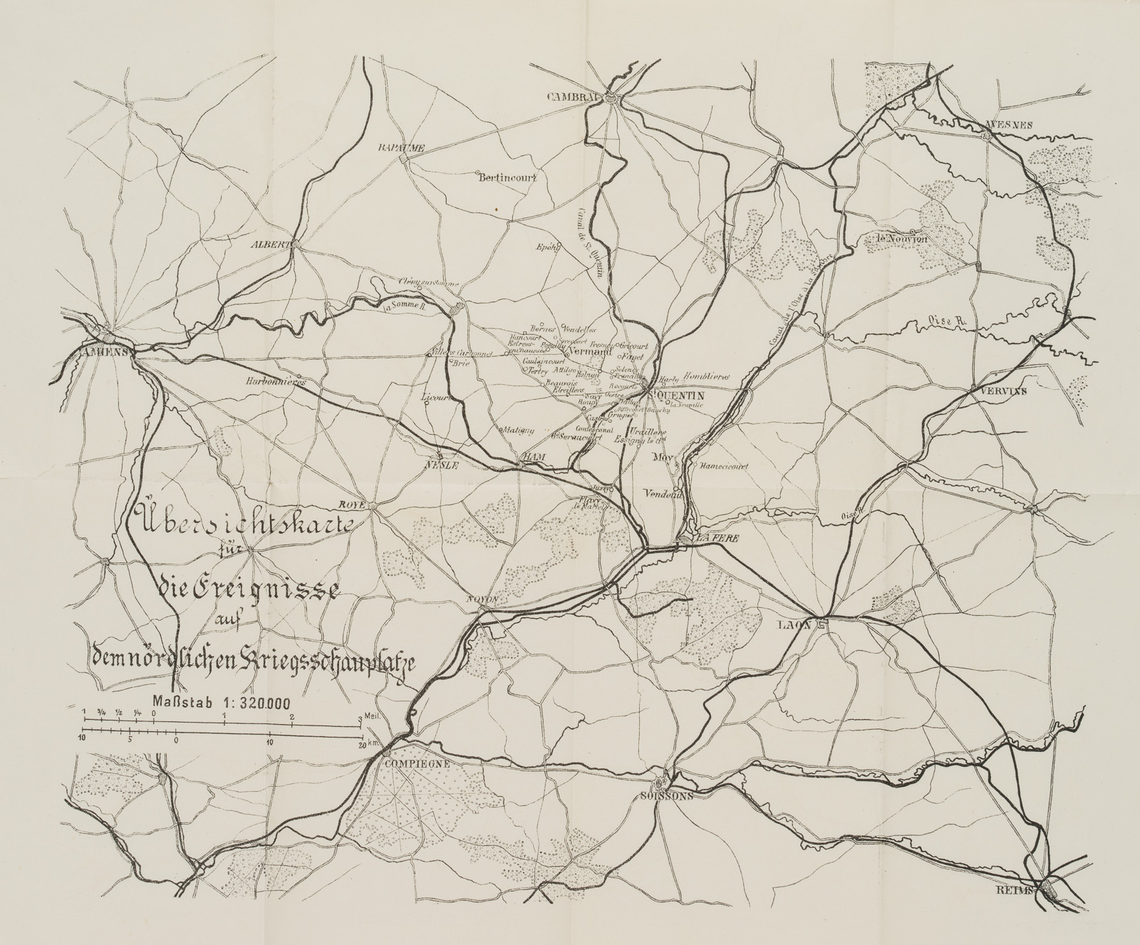 Unknown (19th century), Overview map for the events on the northern theatre of war Champagne Amiens Avesnes Reims Compiegne, c. 1881, Lithography