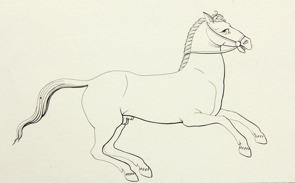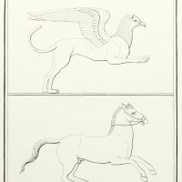Unbekannt (19. Jahrhundert), Umzeichnung antiker Reliefs, Greif und Pferd, 19. Jahrhundert, Radierung