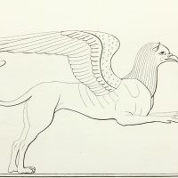 Unknown (19th century), Redrawing of two antique relief figures, griffin and horse, 19th century, Etching