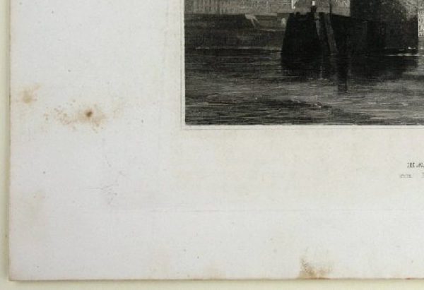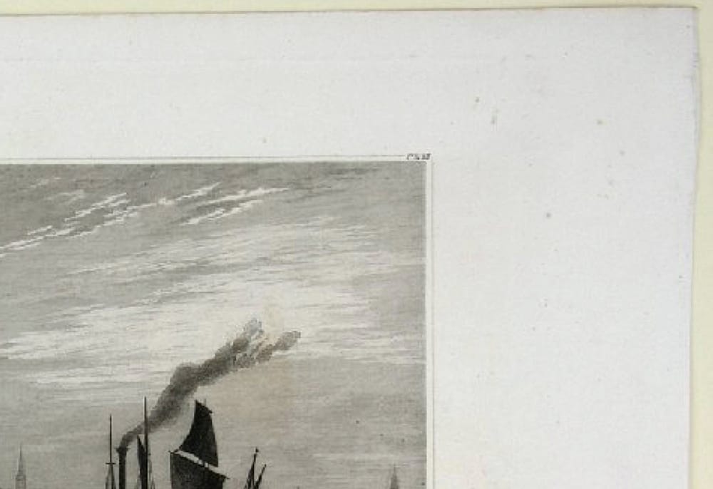 - Beschreibung: Unbekannter Künstler, Le Havre, Stahlstich, um 1850. Beschreibung: Stahlstich eines unbekannten Künstlers, bezeichnet unten Mitte: “Havre en France”, bezeichnet oben links: “CLII”. Stimmungsvolle Ansicht Le Havres vom Wasser aus. Ein mächtiger runder Turm markiert die Hafeneinfahrt, ein Dampfschiff verlässt soeben den Hafen und hinterlässt eine lange Dampfwolke am hell erleuchteten Himmel. Zart hebt sich die Silhouette der Stadt im Hintergrund ab.