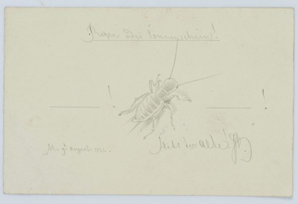 Unbekannt (19. Jahrhundert), Ungeziefer ‘Regen oder Sonnenschein’. Detaildarstellung eines Insekt, 1842, Bleistift
