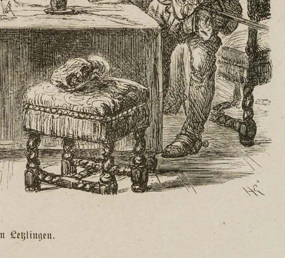 • Beschreibung: Die Darstellung ist unten links monogrammiert, darunter der Titel des Stiches.