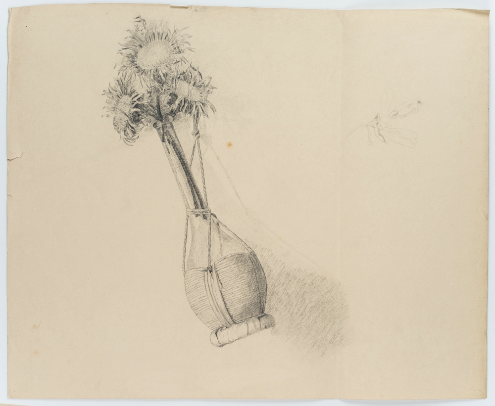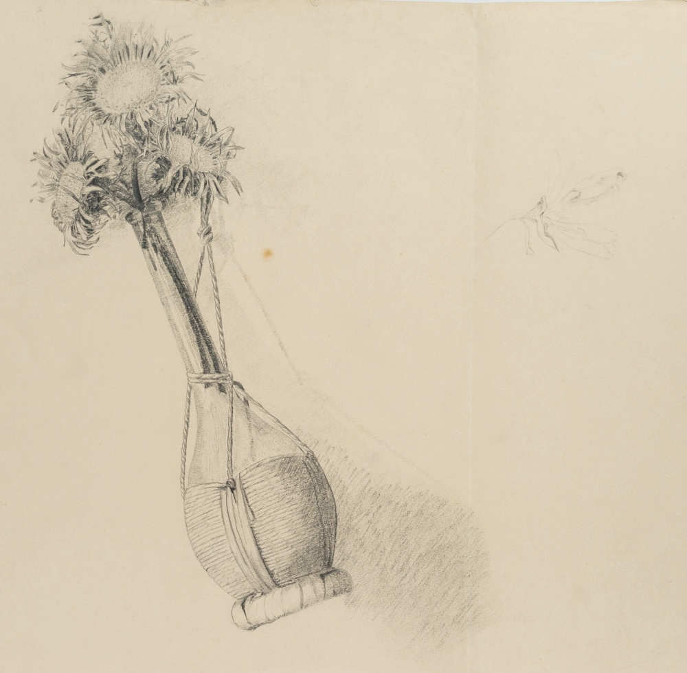 Unknown (19th century), Fading wildflowers in a demijohn, 19th century, Pencil