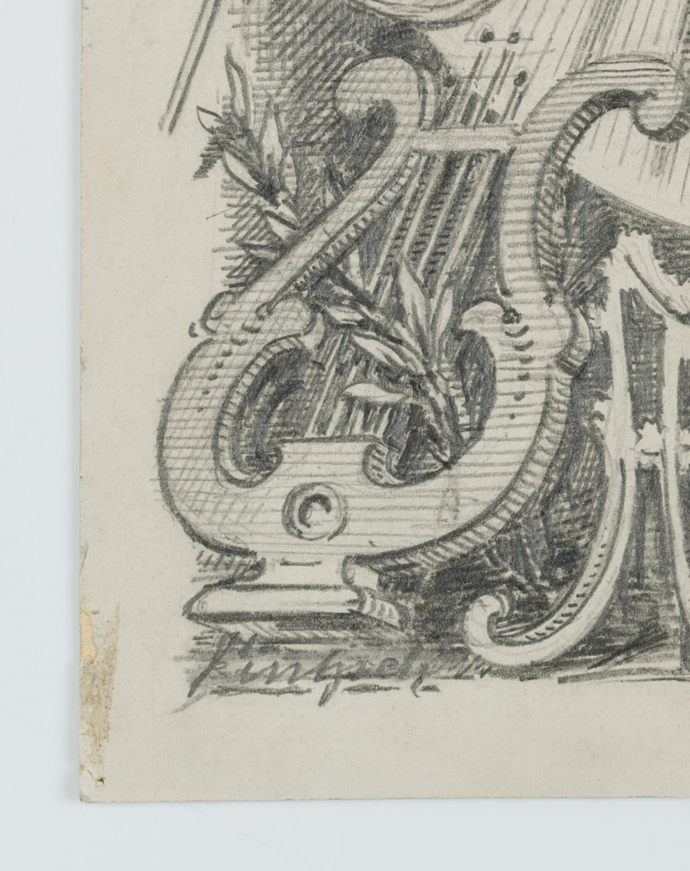 - Inscription: Signed unrecognisably in pencil at lower left with “Fintsch[?]”.