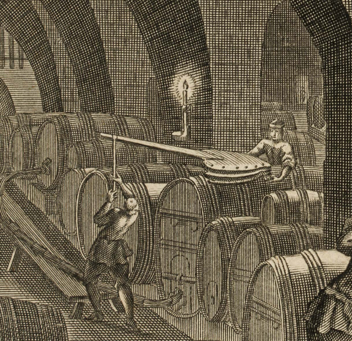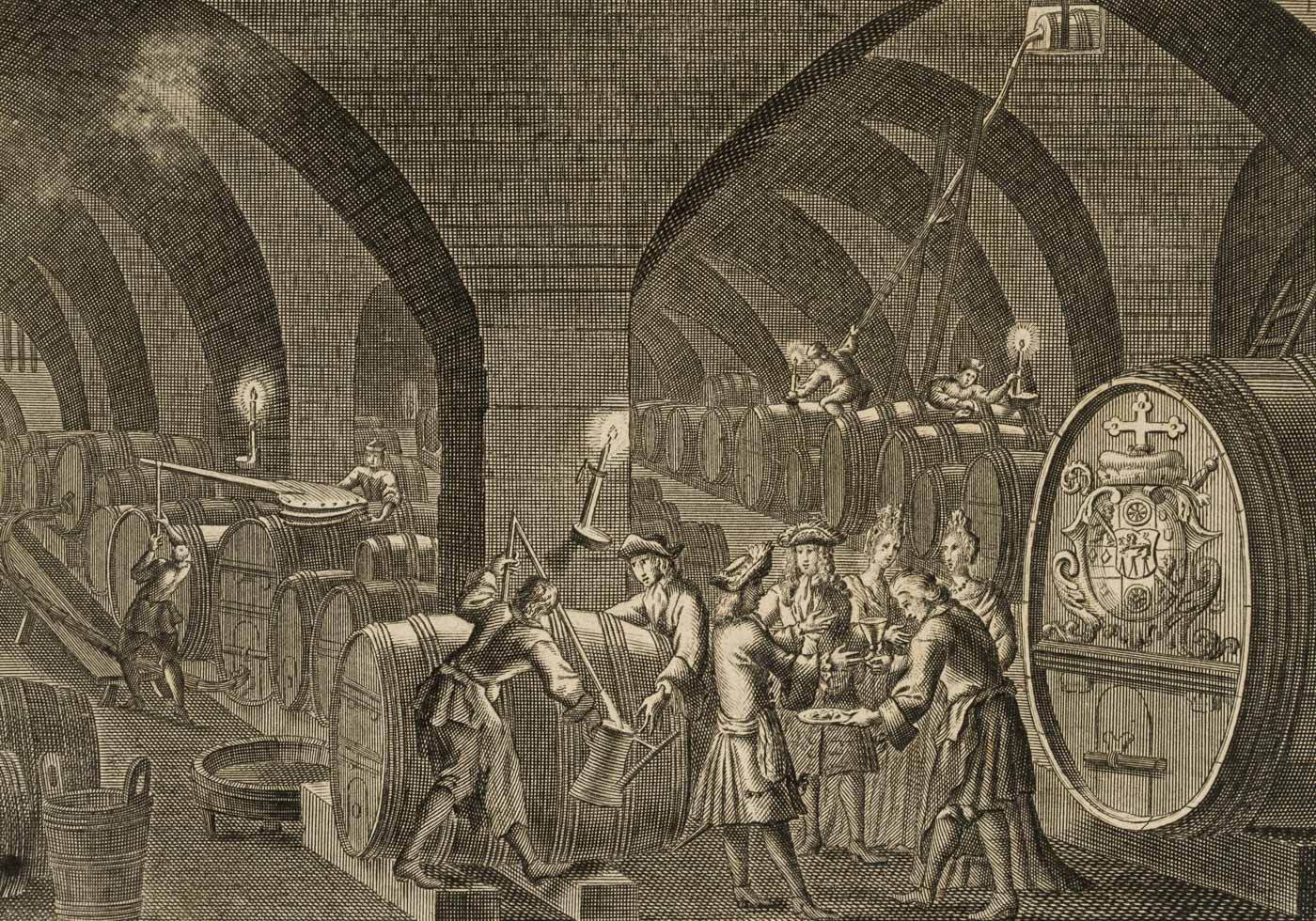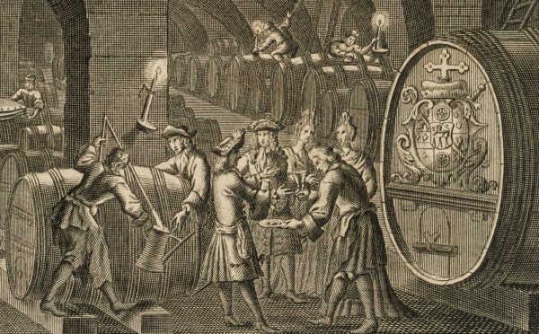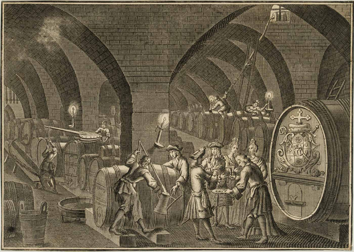 Unbekannt (19. Jahrhundert), Verkostung im Weinkeller, um 1800, Kupferstich