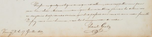 - Beschreibung: Eintrag eines Freundes in Königsberg in französischer Sprache in einem Freundschaftsalbum.