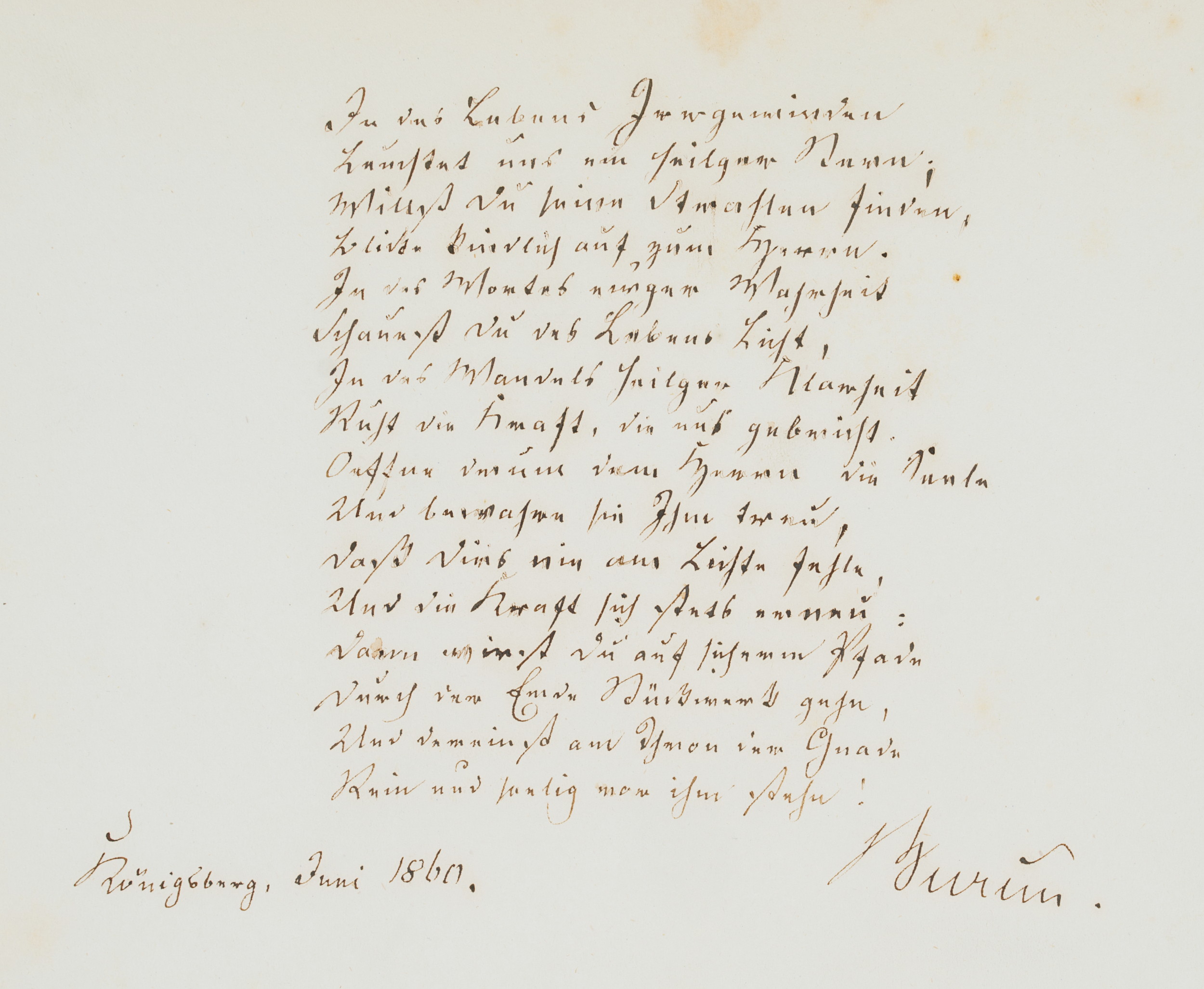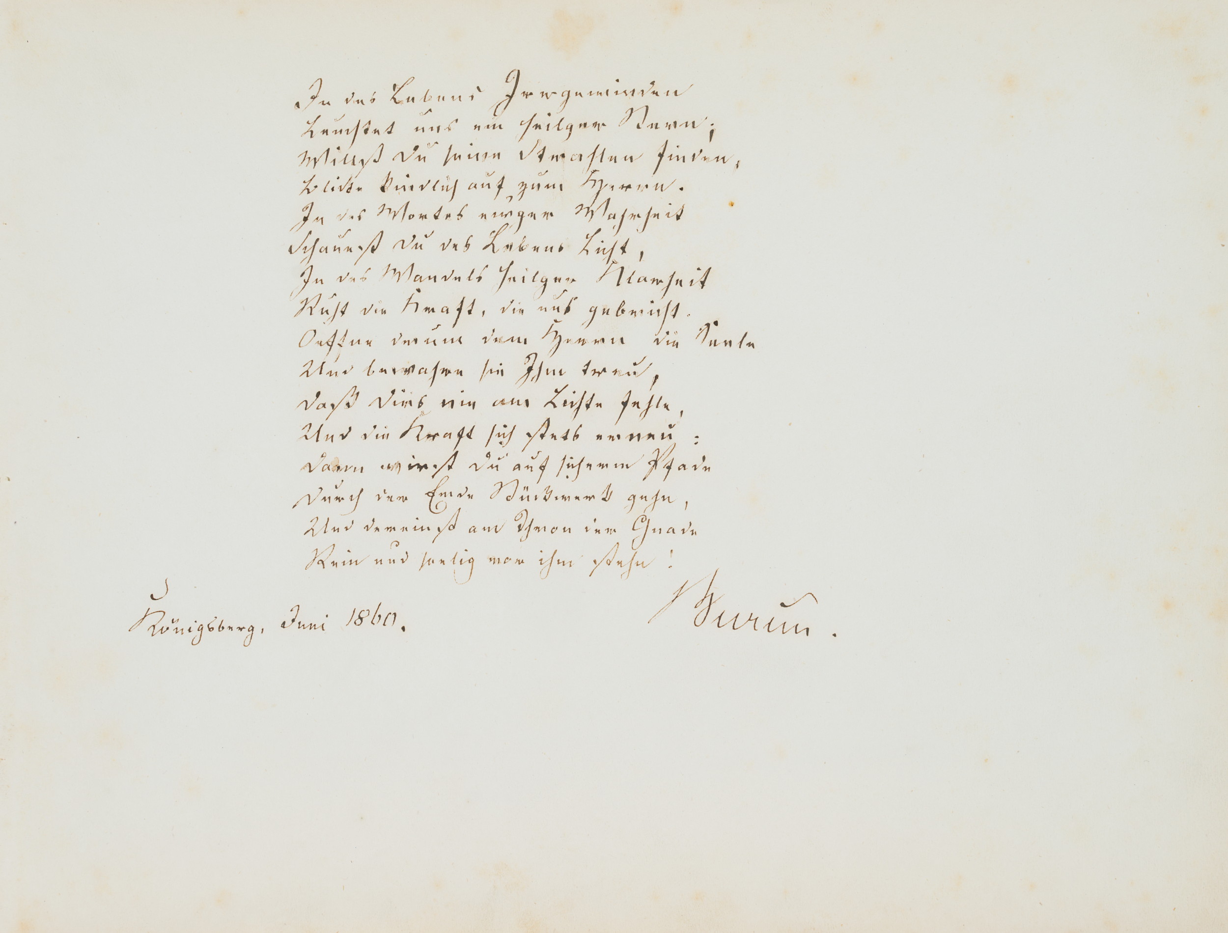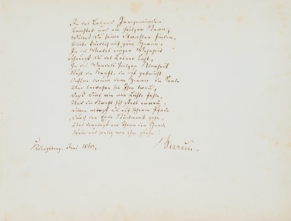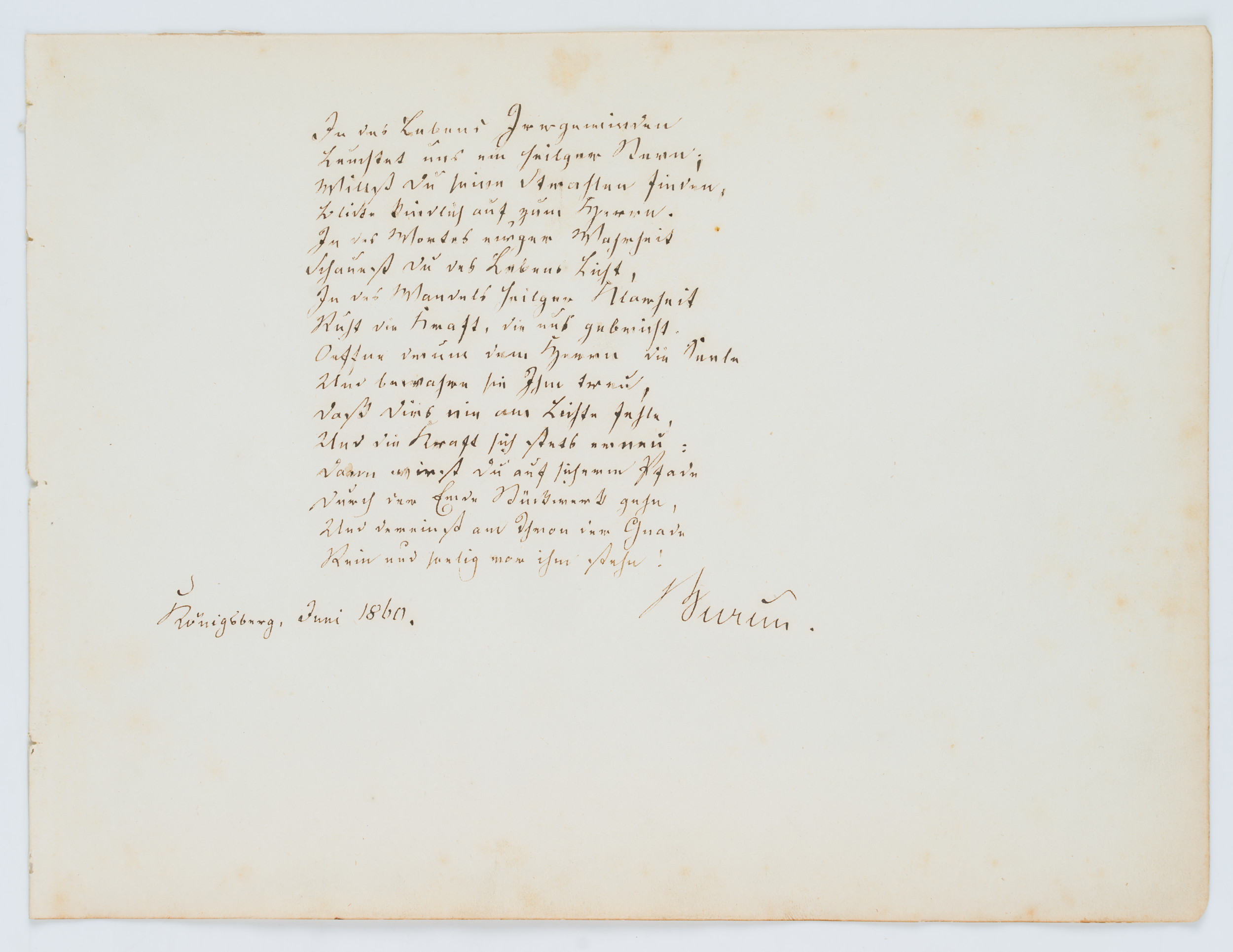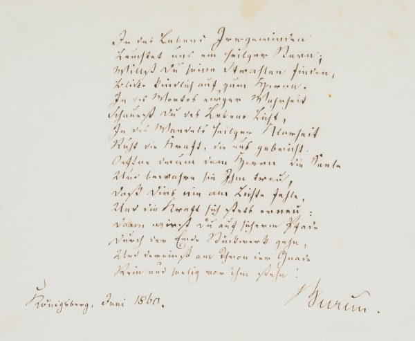 - Beschreibung: Eintrag in einem Freundschaftsalbum eines Freundes in Königsberg.