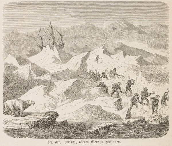 Unbekannt (19. Jahrhundert), “Versuch, offenes Meer zu gewinnen”, Arktische Länder, um 1850, Holzstich