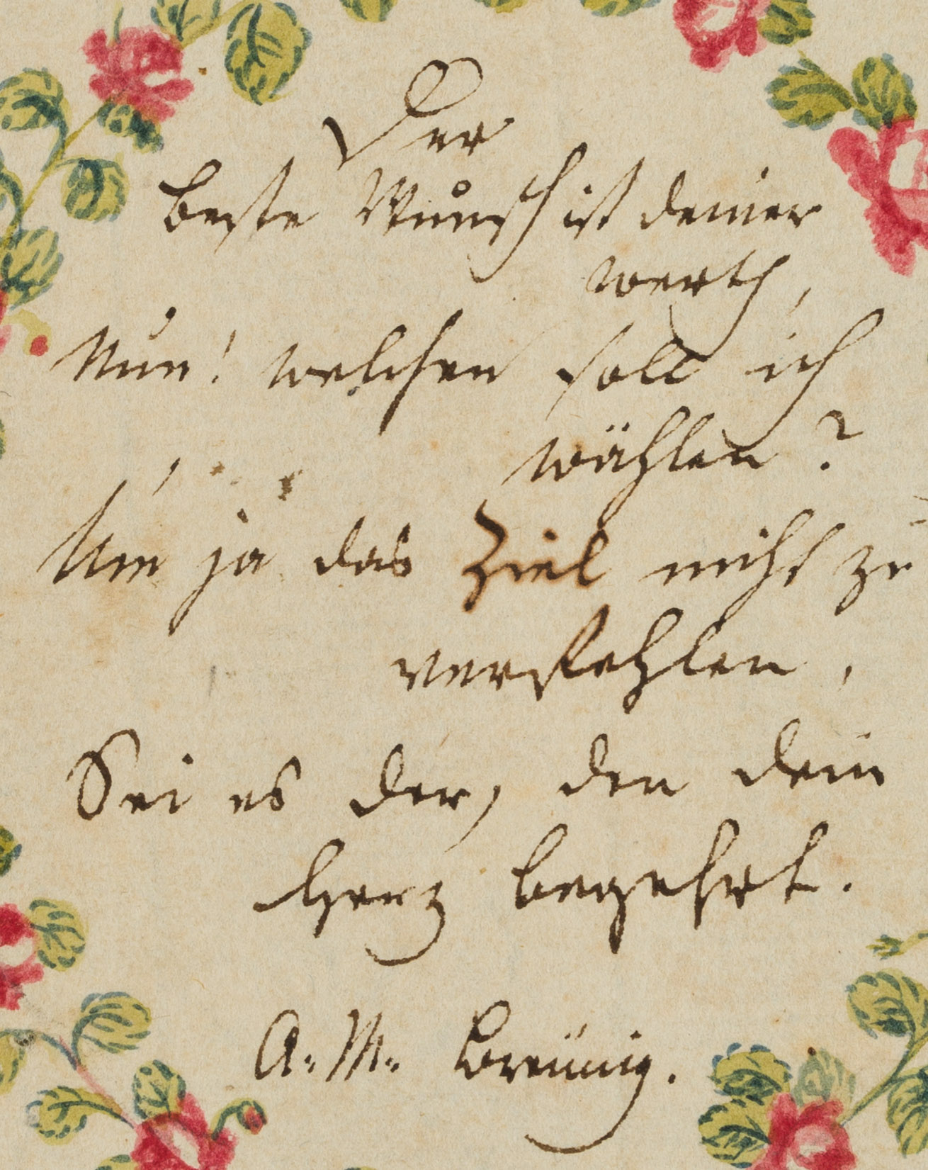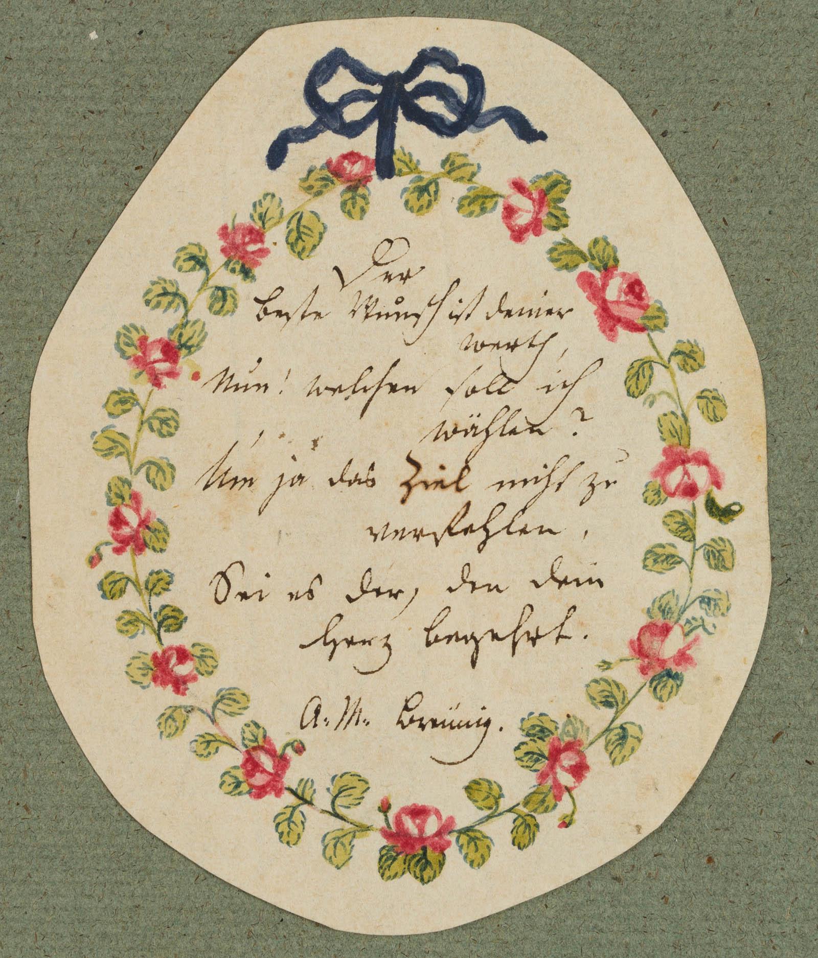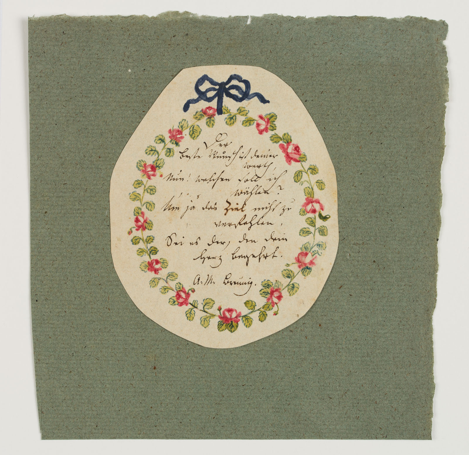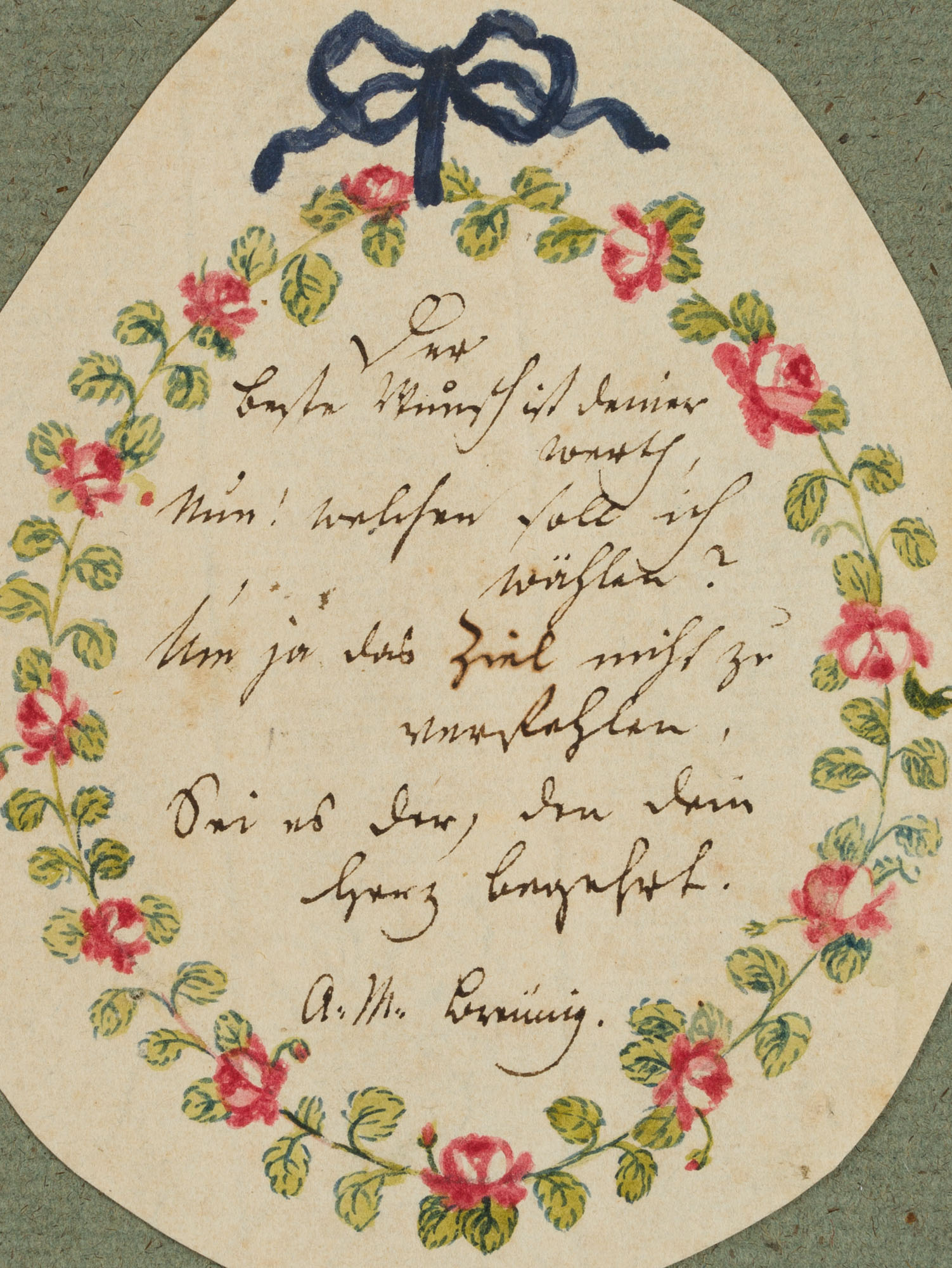 Unbekannt (19.Jhd), Von Rosen gerahmte handschriftl. Widmung. und Tusche,