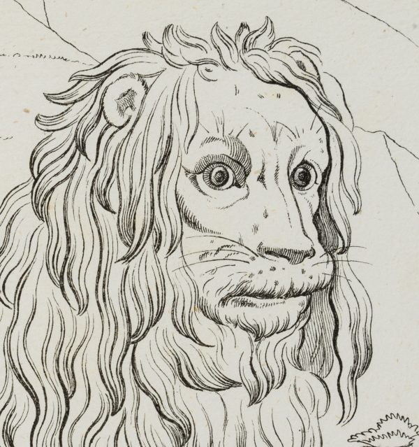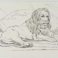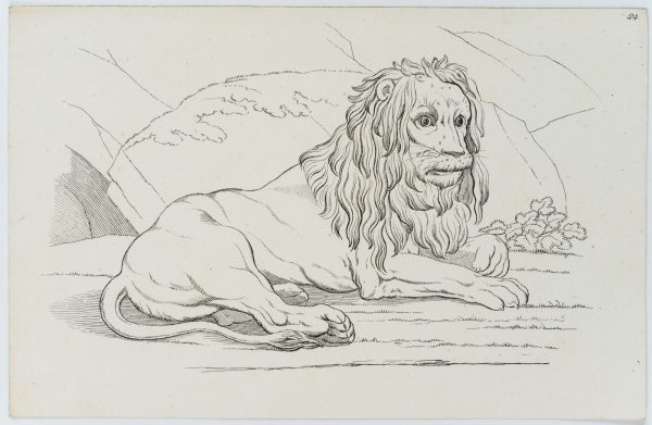 - Bezeichnung: Oben rechts nummeriert: “24.”. Die Zeichenvorlage für Künstler aus dem frühen 19. Jahrhundert zeigt einen lagernden Löwen in der Landschaft.