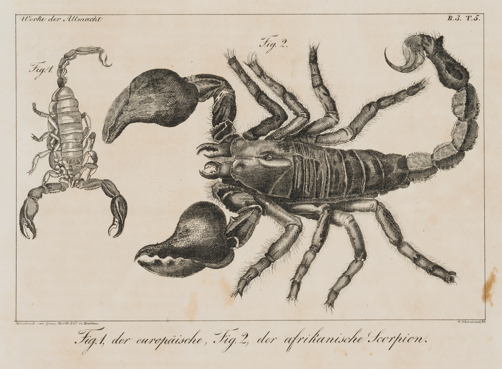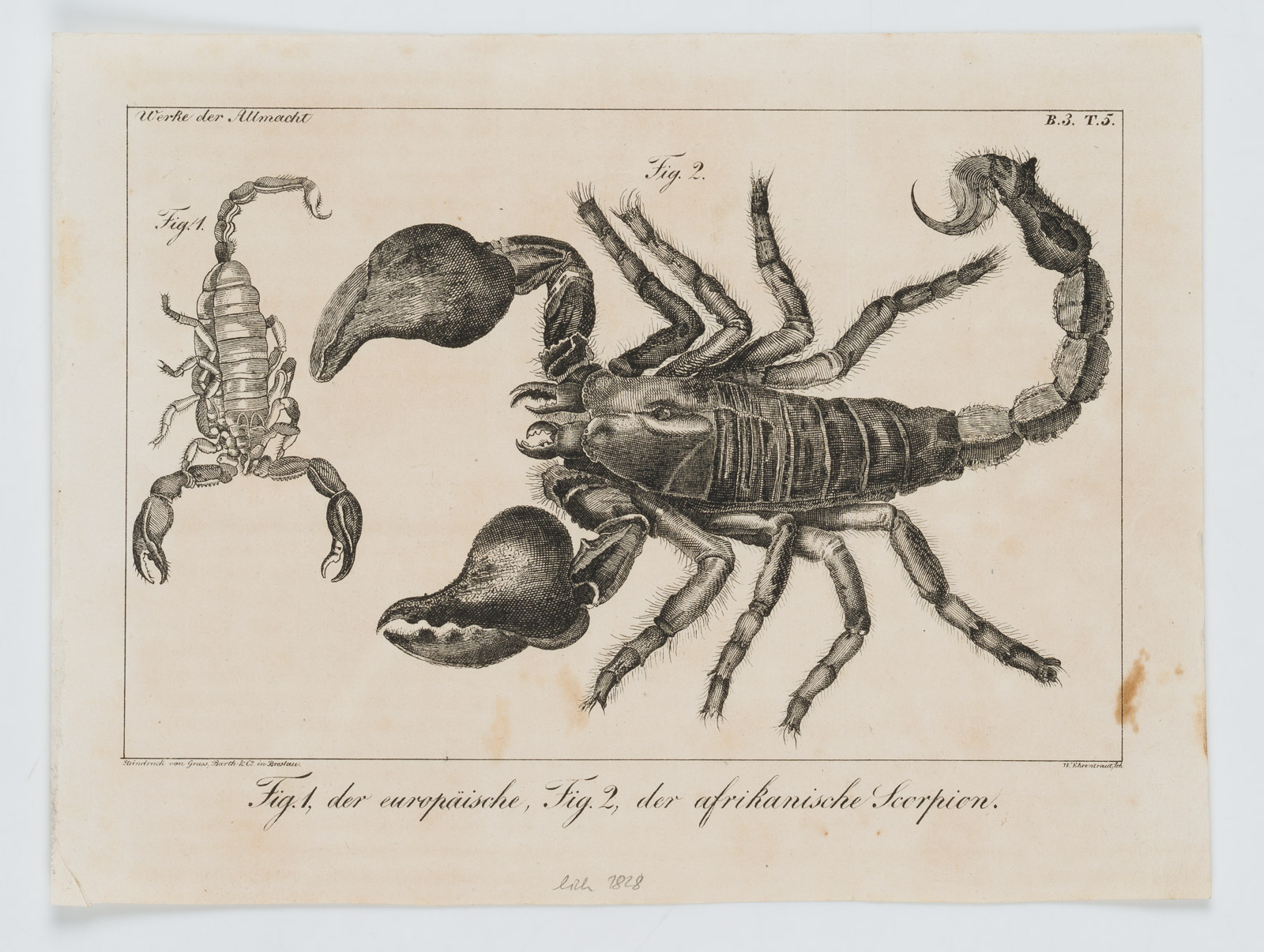 Unbekannt (19. Jahrhundert), W. Ehrentraut, Skorpione, aus: Werke der Allmacht, 1828, Lithographie