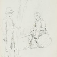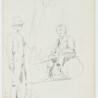 Unbekannt (19. Jahrhundert), Zwei junge Männer unterhalten sich am Waldrand, 19. Jahrhundert, Bleistift