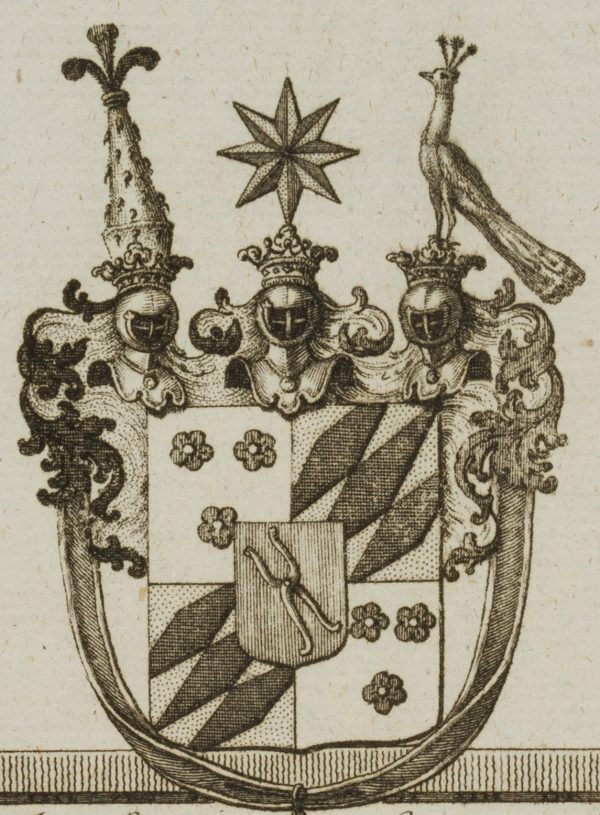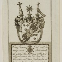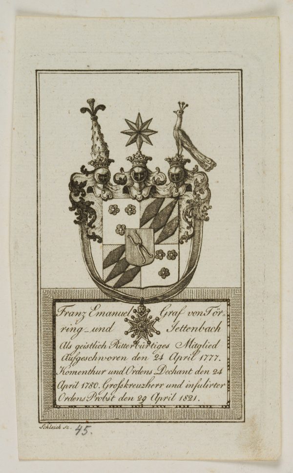 - Description: Depicted is the coat of arms of Franz Emanuel Count of Törring and Jttenbach with the Bavarian Order of St. George. Signed below the depiction on the left.