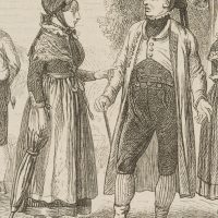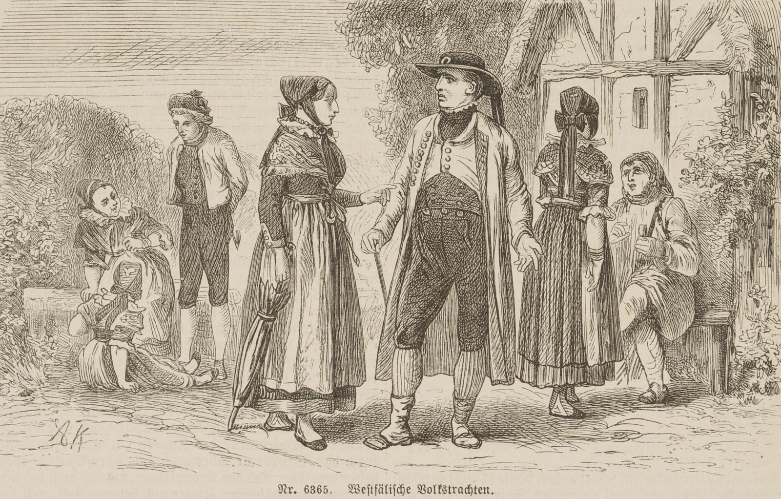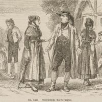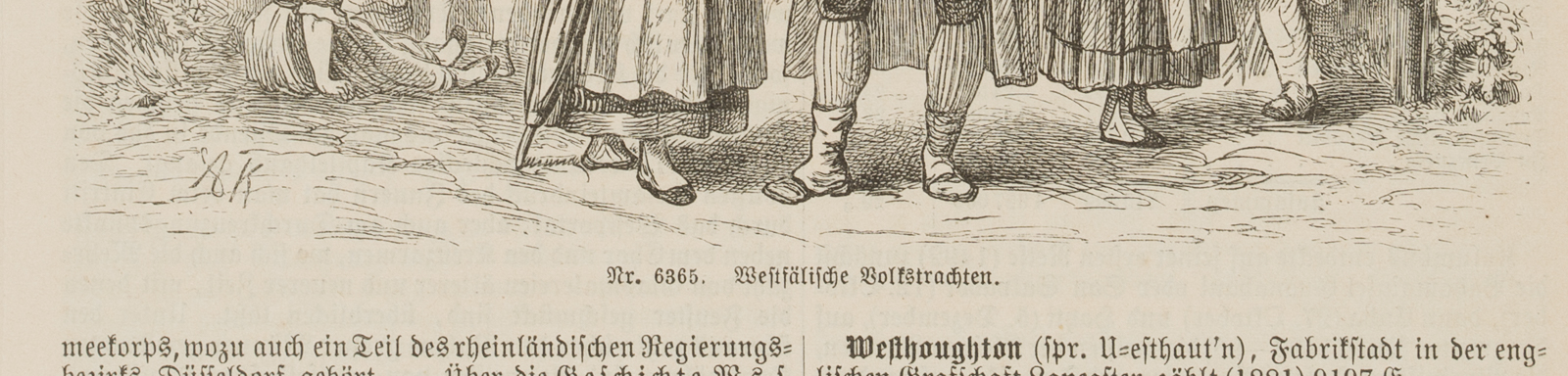 Unbekannt (19. Jahrhundert), Westfälische Volkstrachten, aus einer Enzyklopädie, 1893, Holzstich