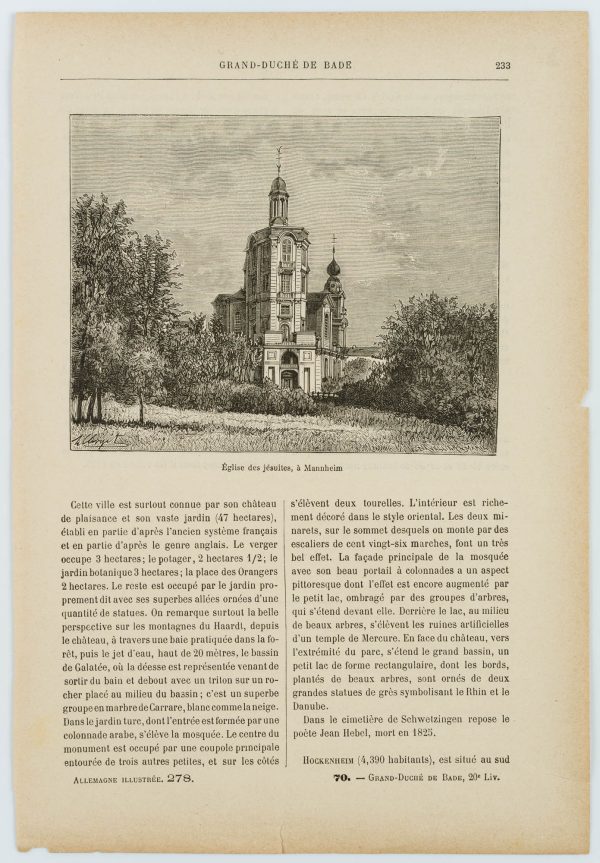 - Beschreibung: Das Blatt Nummer “233” ist aus dem französischen Handbuch “L’Allemagne Illustrée” entnommen. Ein Handbuch über deutsche Regionen und Kunstdenkmäler.