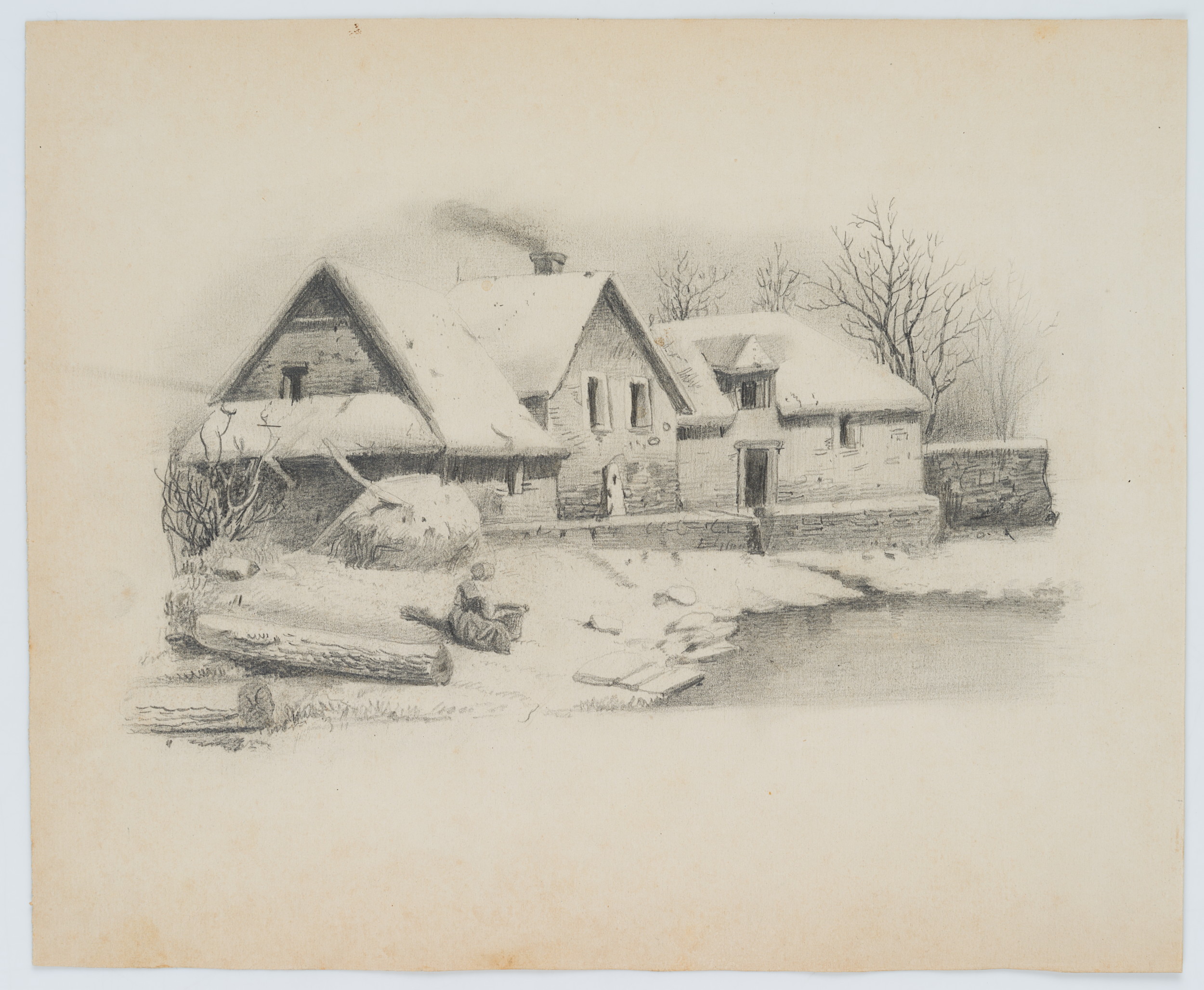 Unknown (19th century), Winter homestead by the water, c. 1860, Pencil