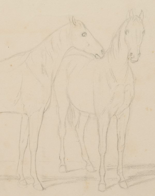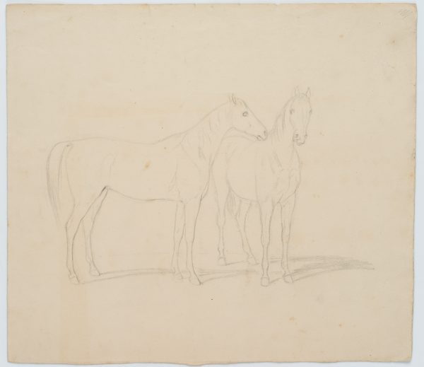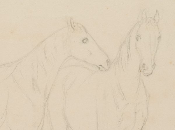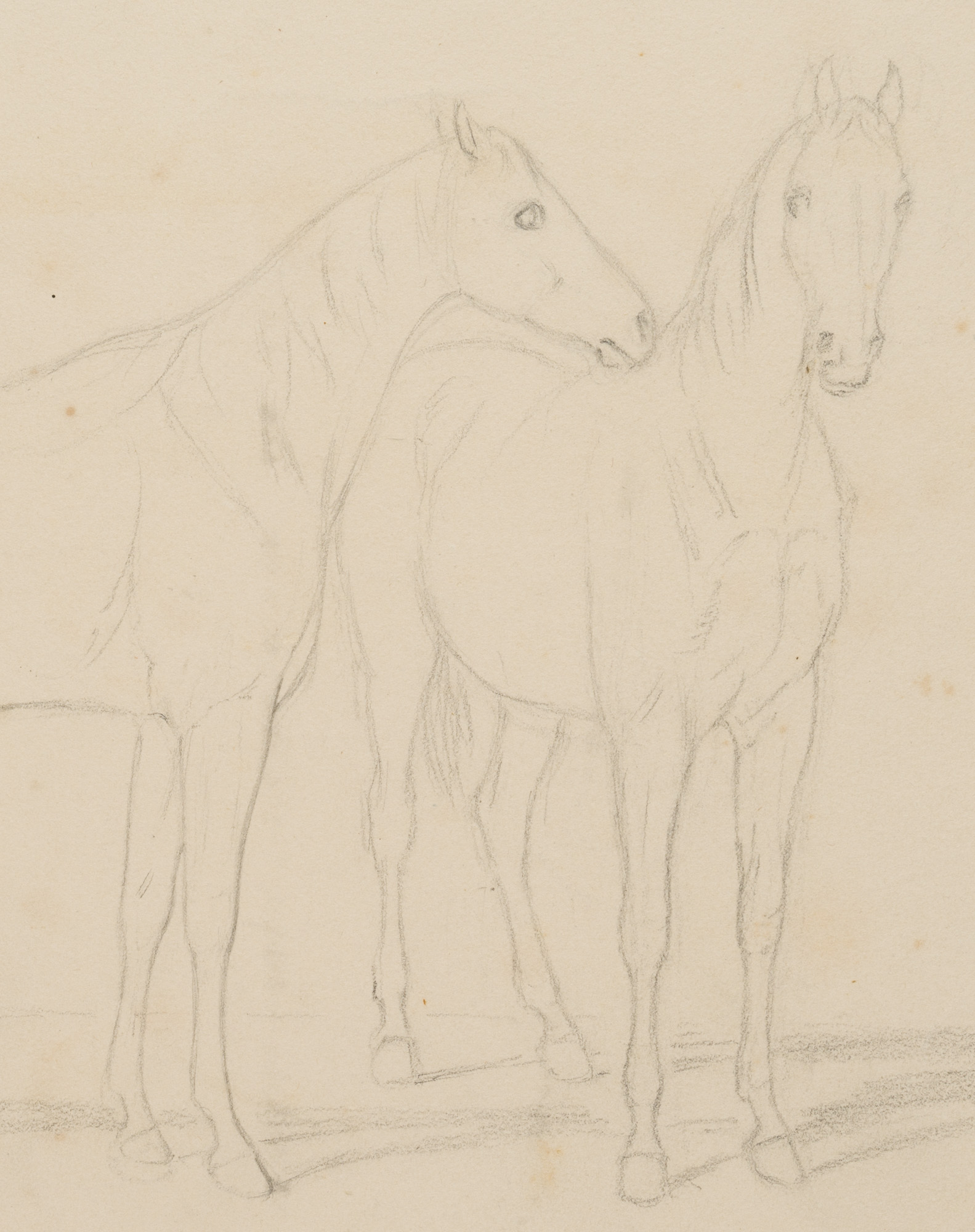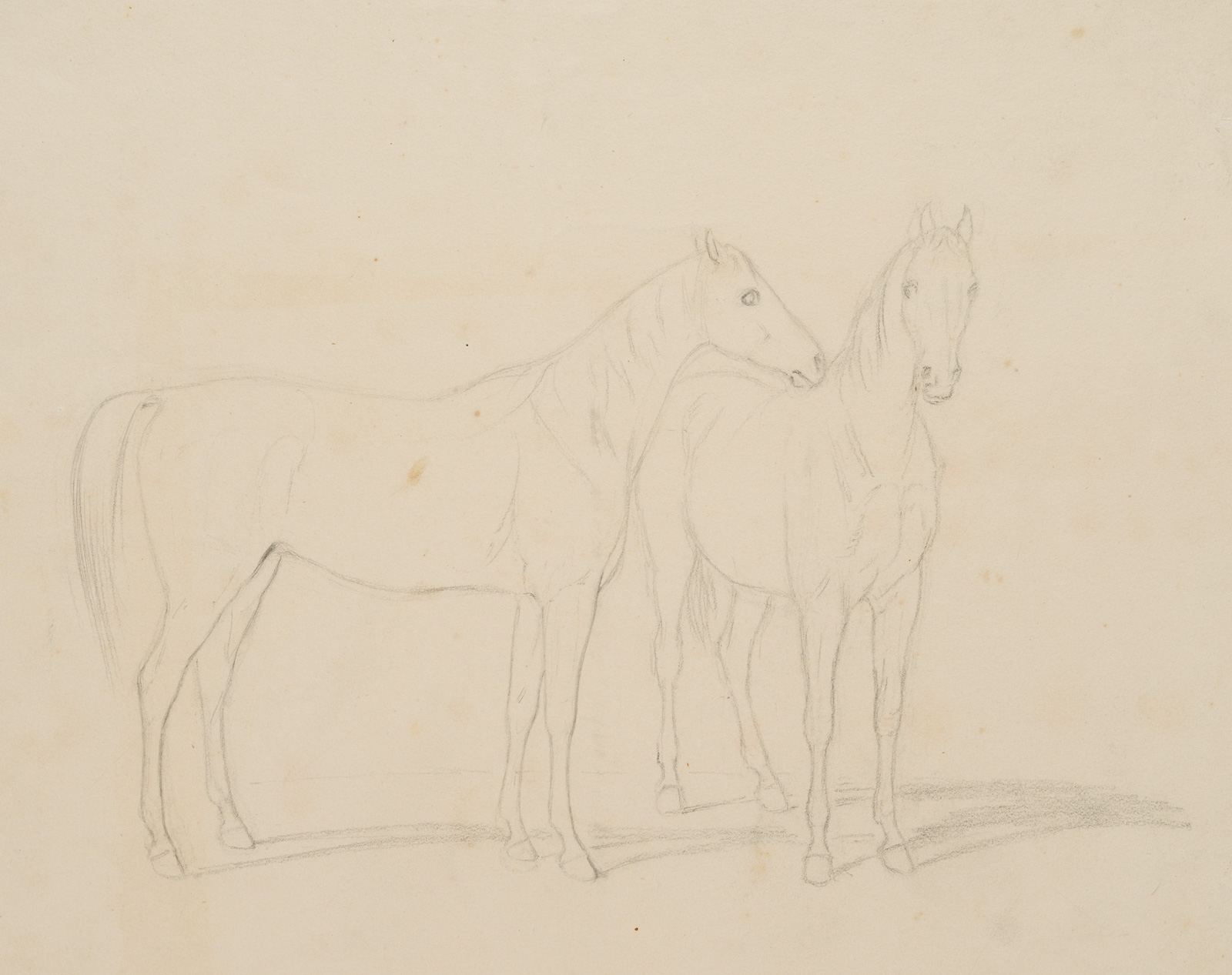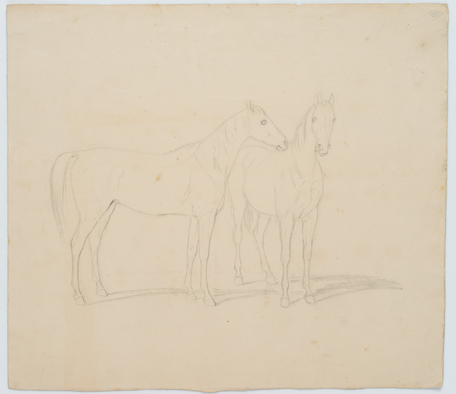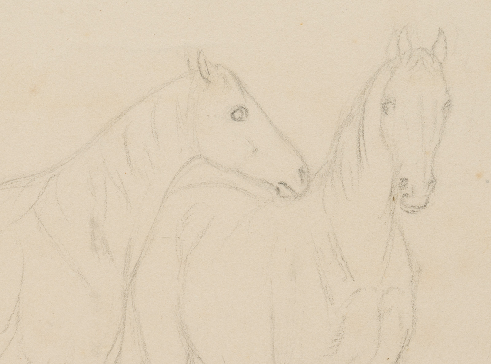 Unknown (19th century), Two horses in the pasture, c. 1890, Pencil